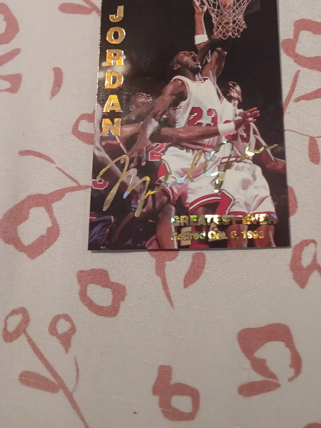 This is a 1993 Fleer basketball card featuring Michael Jordan. It includes his signature. The card states he retired Oct. 6, 1993.