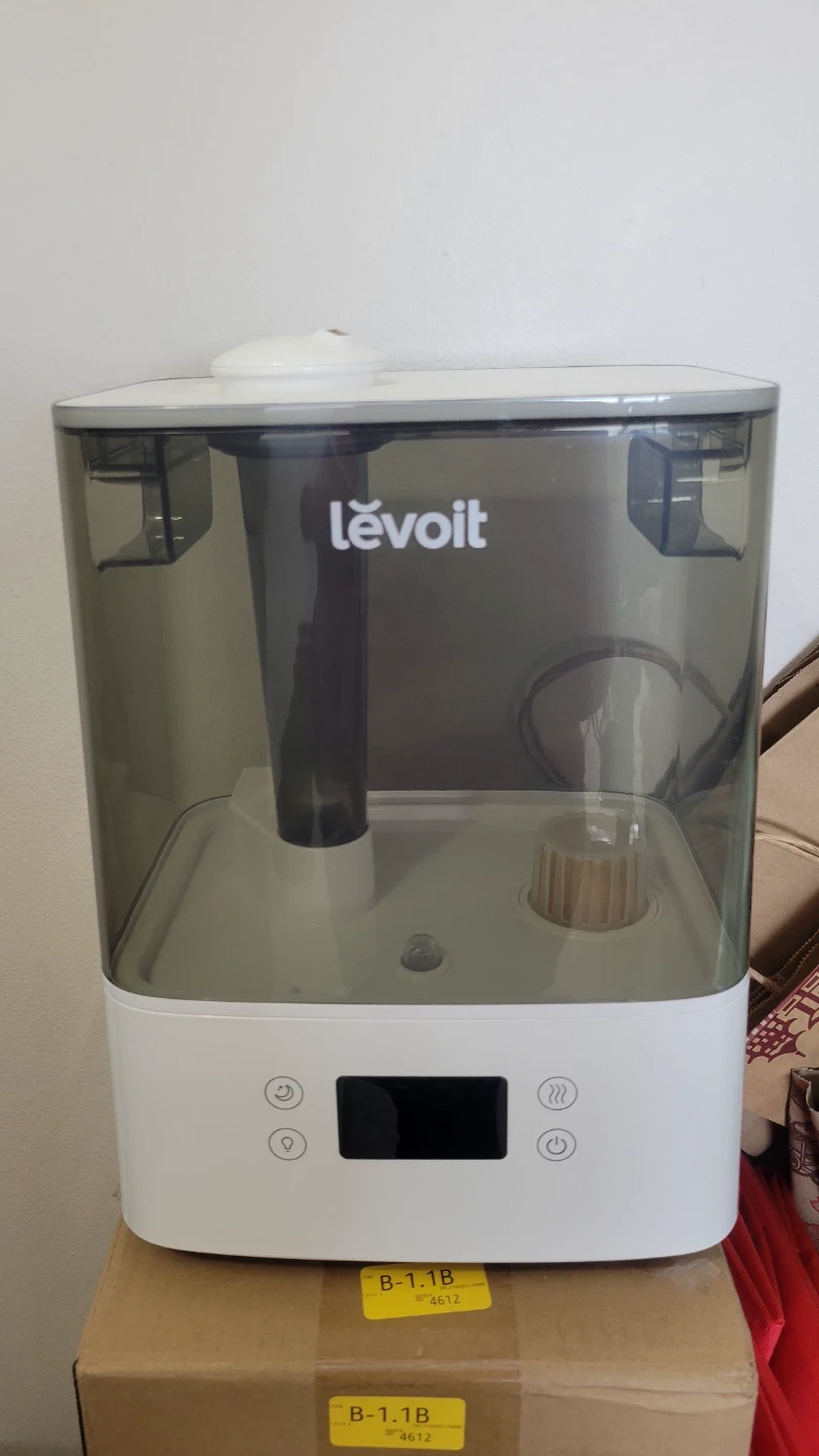 This is a Levoit humidifier. It has a large tank capacity and a digital display with controls. Helps add moisture to dry air.