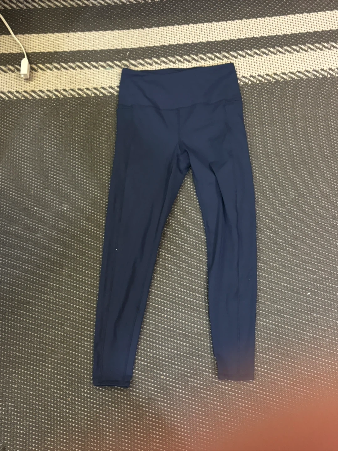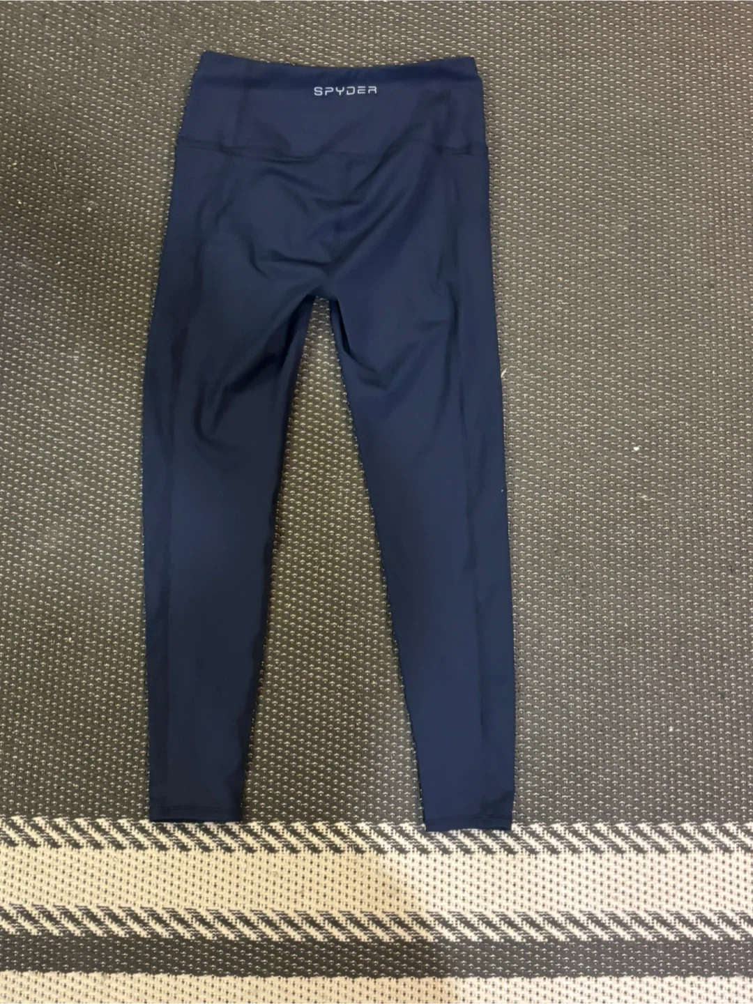 Comfortable Spyder leggings in a navy blue colour. These leggings are great for workouts or casual wear. They are made of a stretchy material.