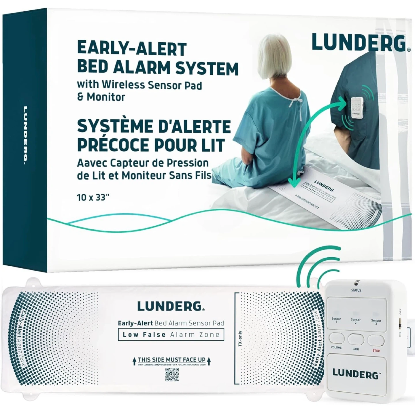 Lunderg Early Alert Bed Alarm for Elderly Adults - Wireless Sensor Pad & Pager - with Pre-Alert Smart Technology - Safety Bed Alarms and Fall Prevention for Elderly and Dementia Patients