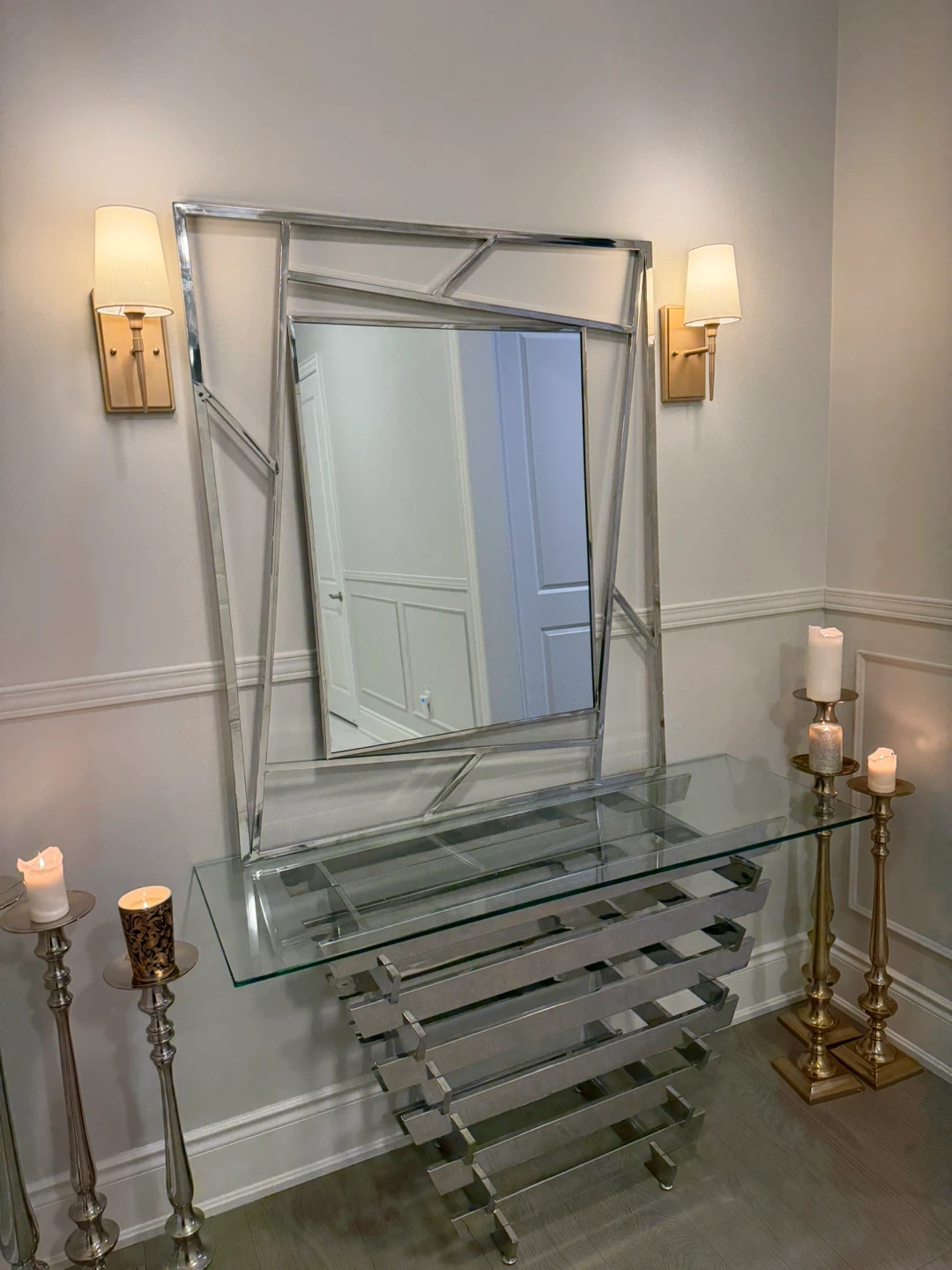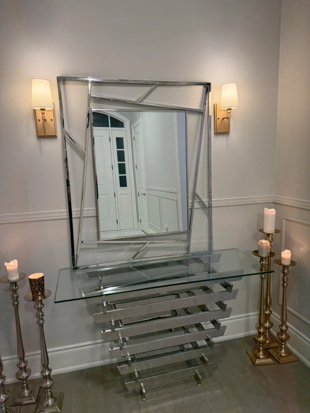 Buy & SellLarge chrome mirrorLarge chrome mirror$287Large mirror has a chrome geometric frame. Mirror dimensions w : 39” x L : 47” Selling $350WHERE TO MEETCheck LocationView MapSELLERShayNobleton100 reviews0 chats·1 favorites·27 viewsSEND CHAT TO SELLERHi Shay! I’m interested in your listing.Hi Shay! I’m interested in your listing.Get the Karrot app to chatSign In to chat
