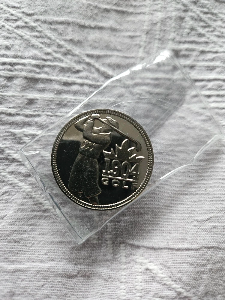 Selling a new 1904 Golf coin/marker, still in its protective plastic case! It's in great condition and would be perfect for any coin collector or golf enthusiast.