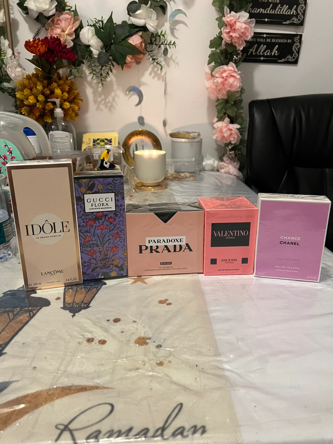 Assorted Perfumes: Lancome, Gucci, Prada, Valentino, Chanel