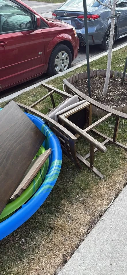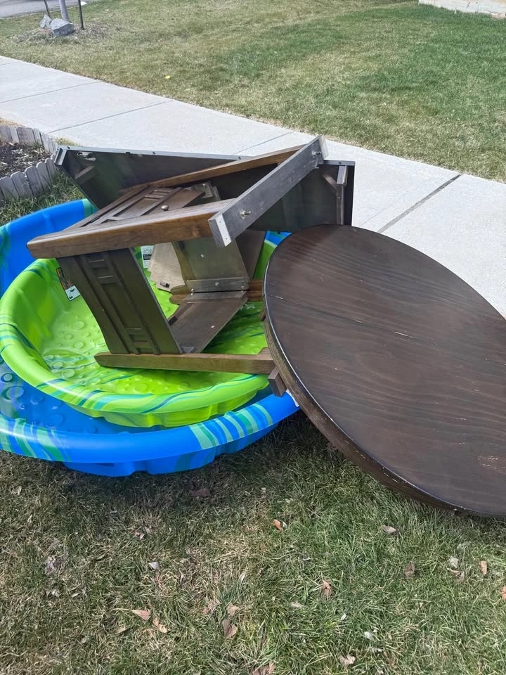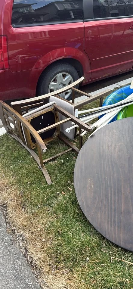 Clearing out some items! Everything is completely free and currently sitting on the curb. Expandable Dining Table: Dark wood finish. It is used and not in mint condition, but still fully functional and sturdy. Great for a small space or a DIY project. 4 Matching Chairs: These are included! Please note they are not in great condition—they will likely need a screw or two in the bottom legs to steady them up, but they are yours if you want them. 2 Plastic Kiddie Pools: One is in good shape; the other has a small hole that can be easily plugged. Please message me for the address if you are interested in coming to pick them up. You will need a vehicle capable of hauling these away! Pick up in West Brant.