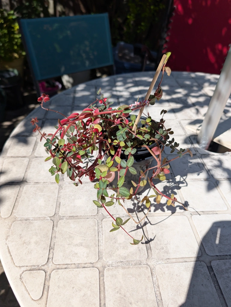A lovely potted plant ready for a new home! It features vibrant green and red leaves, adding a touch of colour to any space. $5!