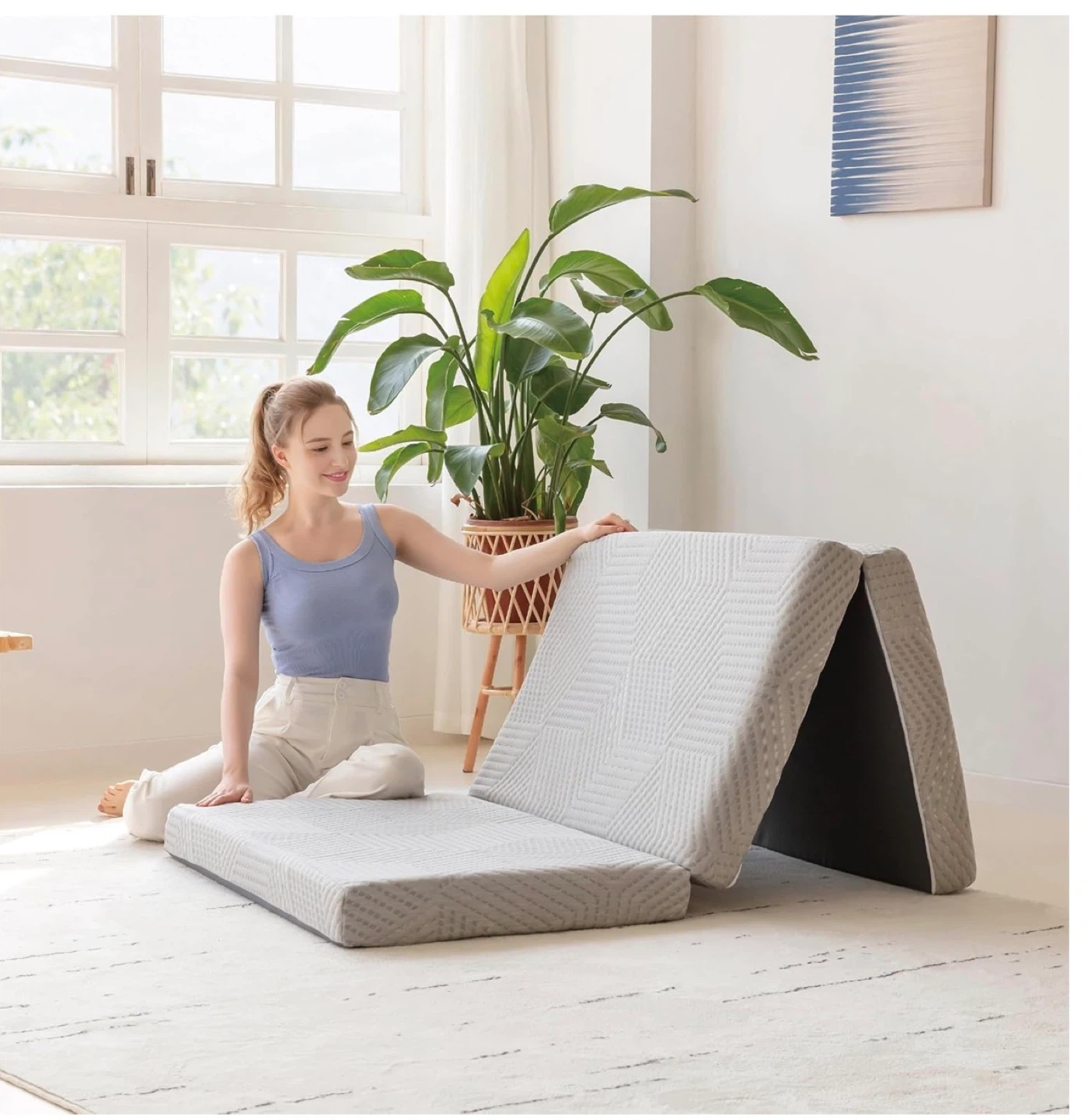 Selling a folding foam mattress that's easy to carry and store! It comes with a carrying case, making it super convenient. This mattress is perfect for guests, camping, or just relaxing at home. It can be easily folded into a chair or a compact size for storage