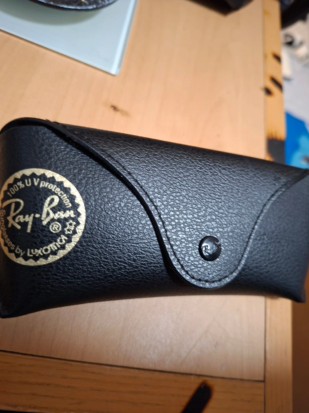 These are Ray-Ban sunglasses with a tortoise shell frame. They offer 100% UV protection. Includes the original black case.