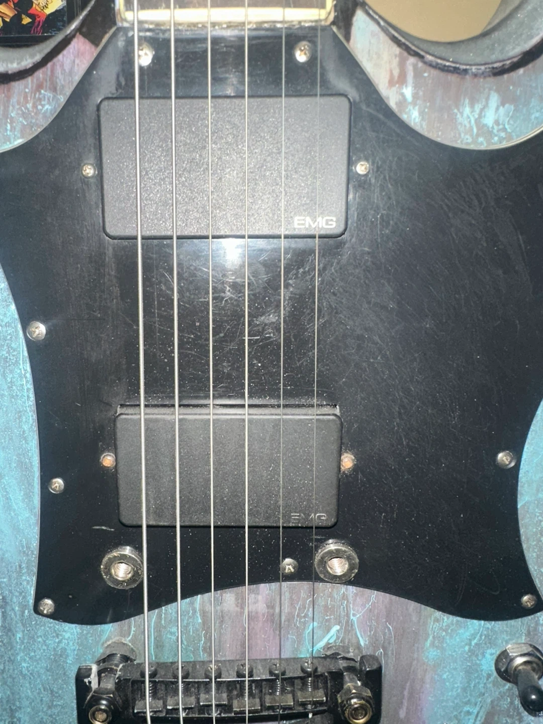 2006 Black Gibson Gothic Explorer electric guitar with EMG pickups. It's a V-shaped body style. Perfect playing condition. Player worn! (Reliced) about were. Has Gibson snakeskin case
