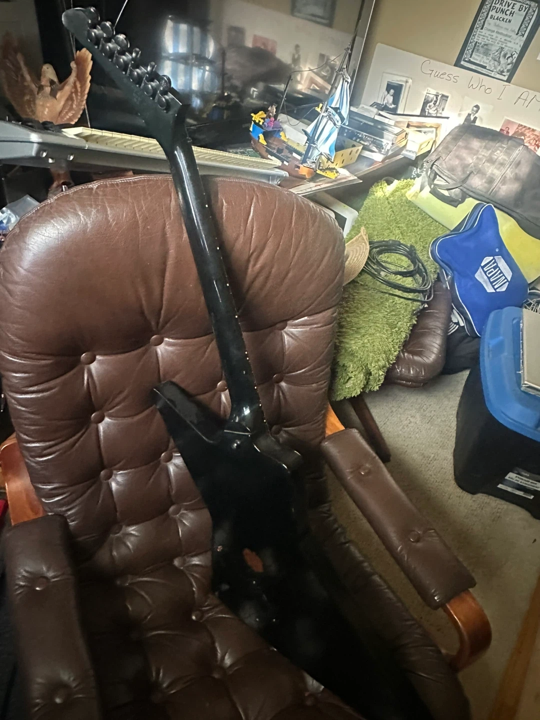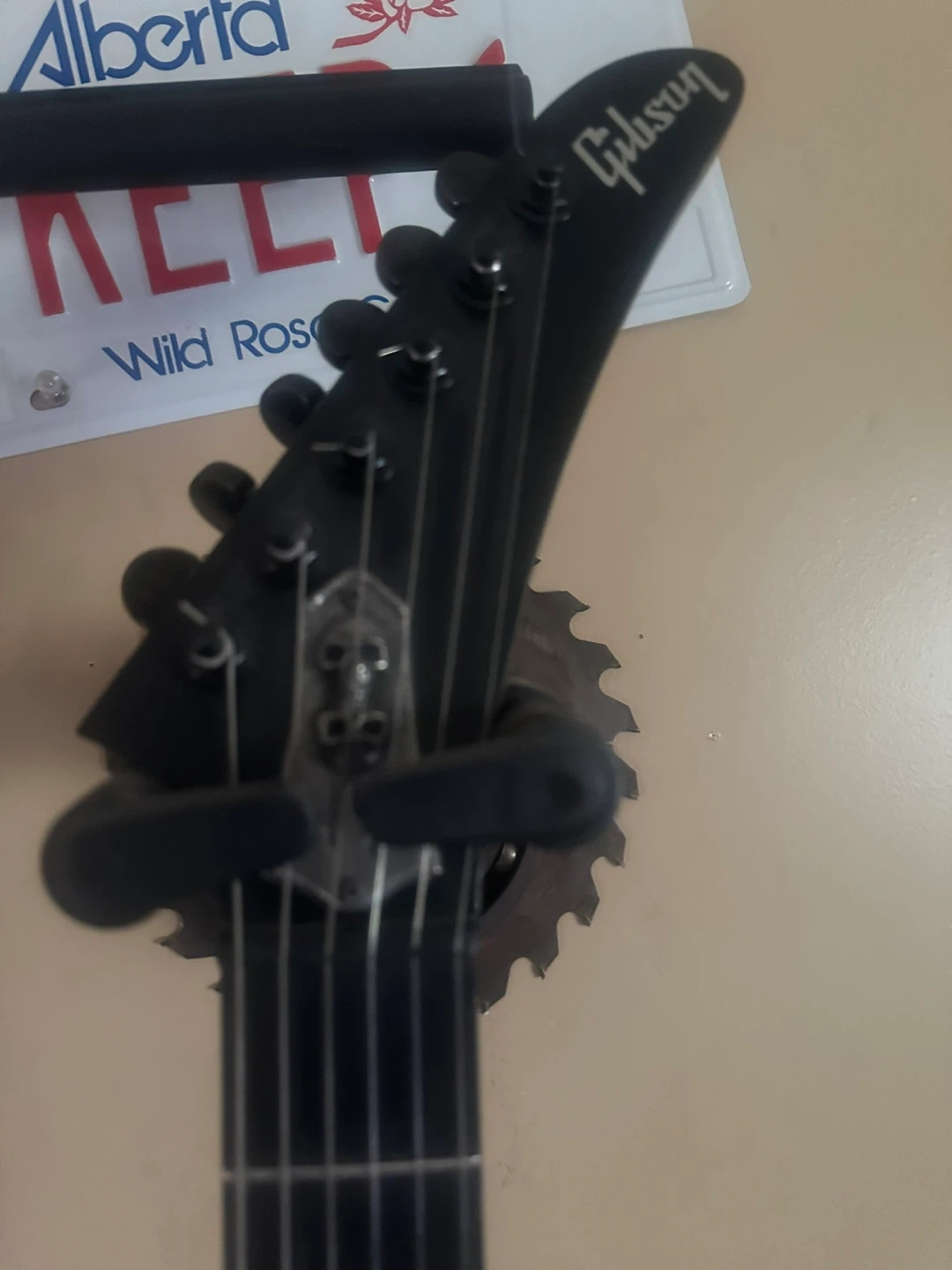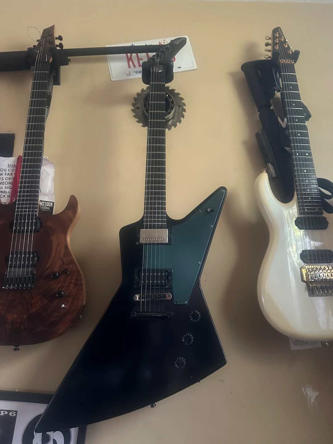 2006 Black Gibson Gothic Explorer electric guitar with EMG pickups. It's a V-shaped body style. Perfect playing condition. Player worn! (Reliced) about were. Has Gibson snakeskin case