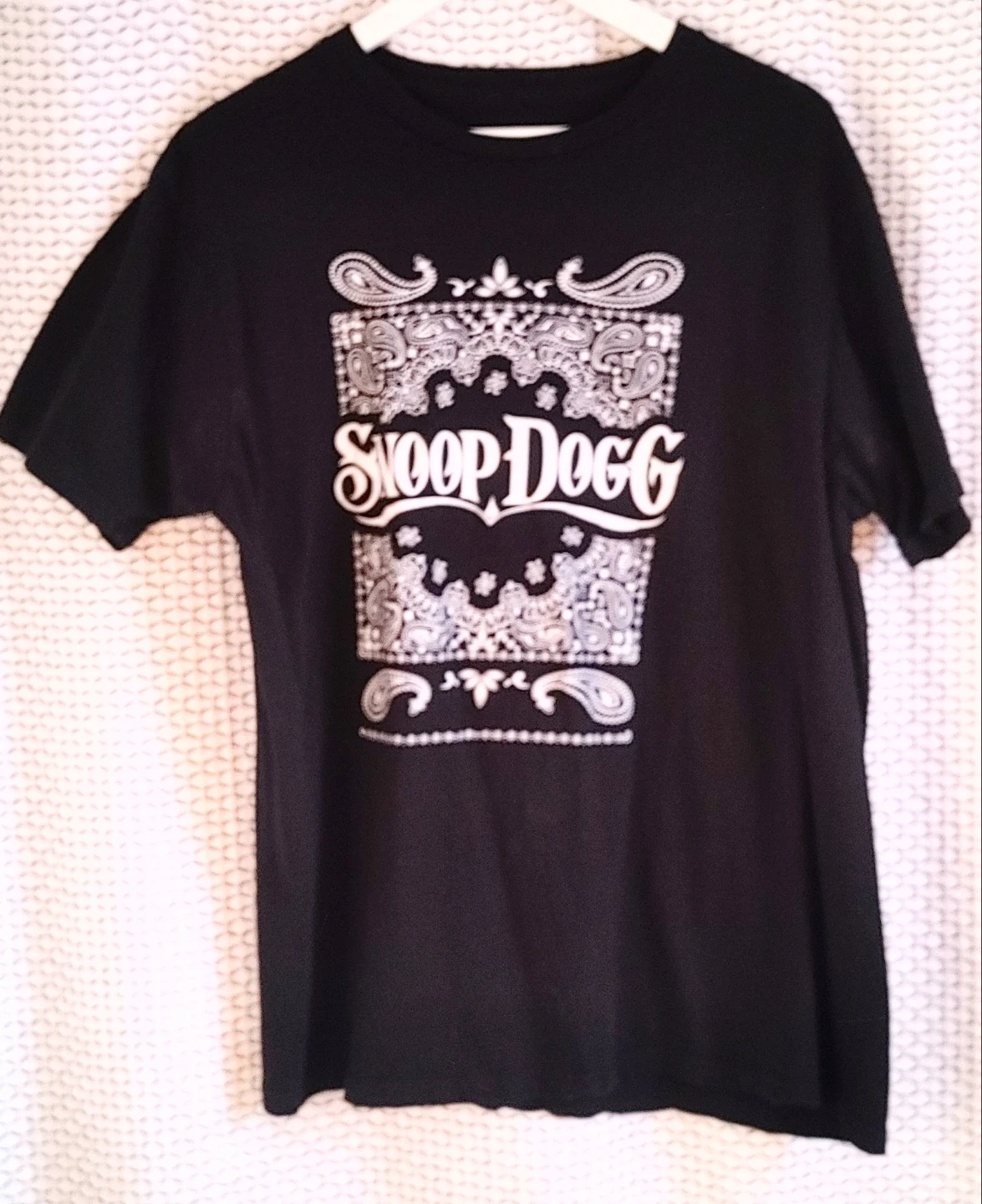 Mens Black t-shirt with Snoop Dogg graphic and Death Row Records logo. It's size XL. 100% cotton. T shirt in good condition. No rips, stains or fraying. Smoke free home pick up Mt.Brydges cash only.