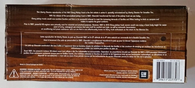 Liberty Classics 1967 Chevy Pickup Truck Canadian Tire Limited Edition die cast metal collector bank. New in box, never opened, but box has some minor damage from storage (see photo). This is a 1:24 scale model. It's #3 in a series of 4, with a production run of 18,500 pieces. Happy to meet up in downtown Kitchener