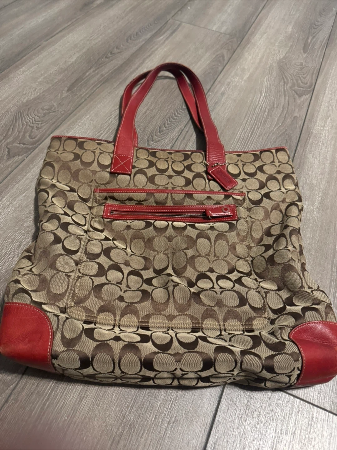 A Coach tote bag featuring the signature C monogram pattern. It's made with a combination of canvas and genuine leather trim. This bag's design is classic and functional. Never use this looking for a new home. In brand new condition!