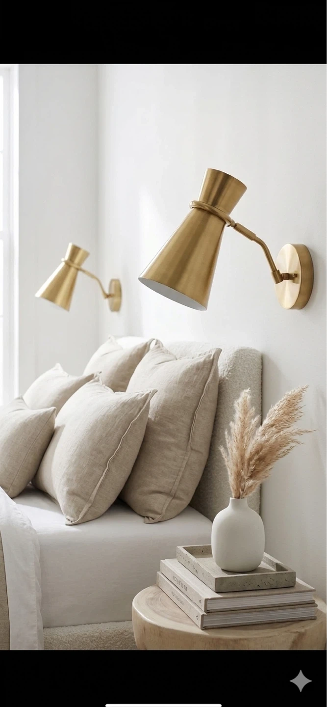 These wall sconces are finished in a brushed brass. They'd be great for adding accent lighting to a bedroom or living area.
