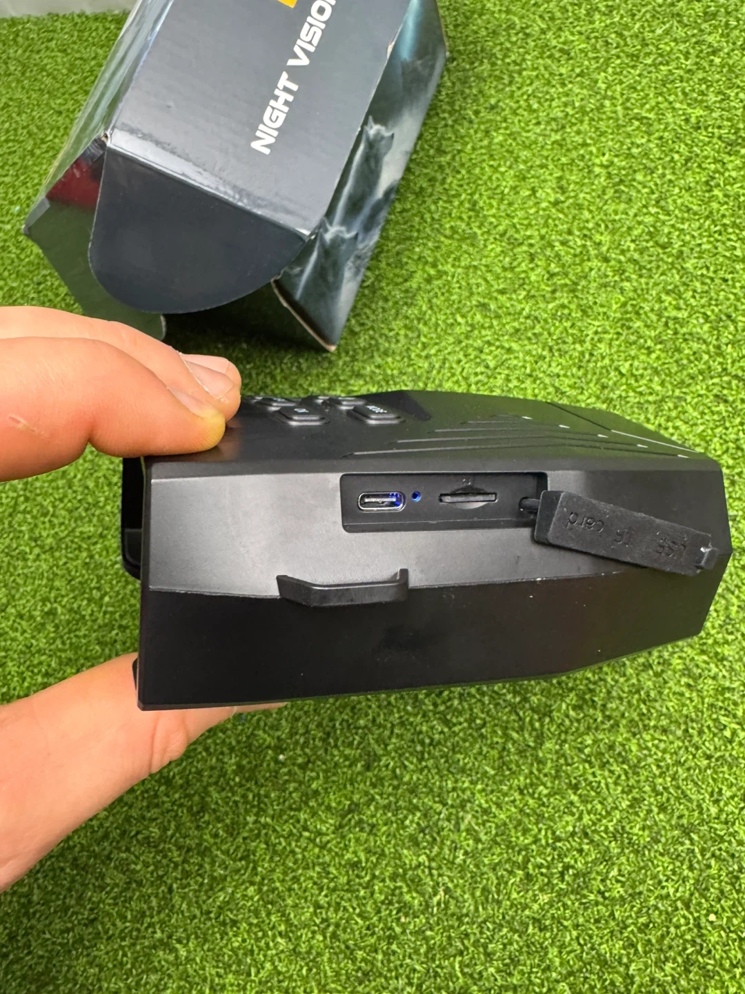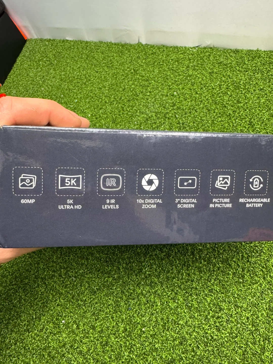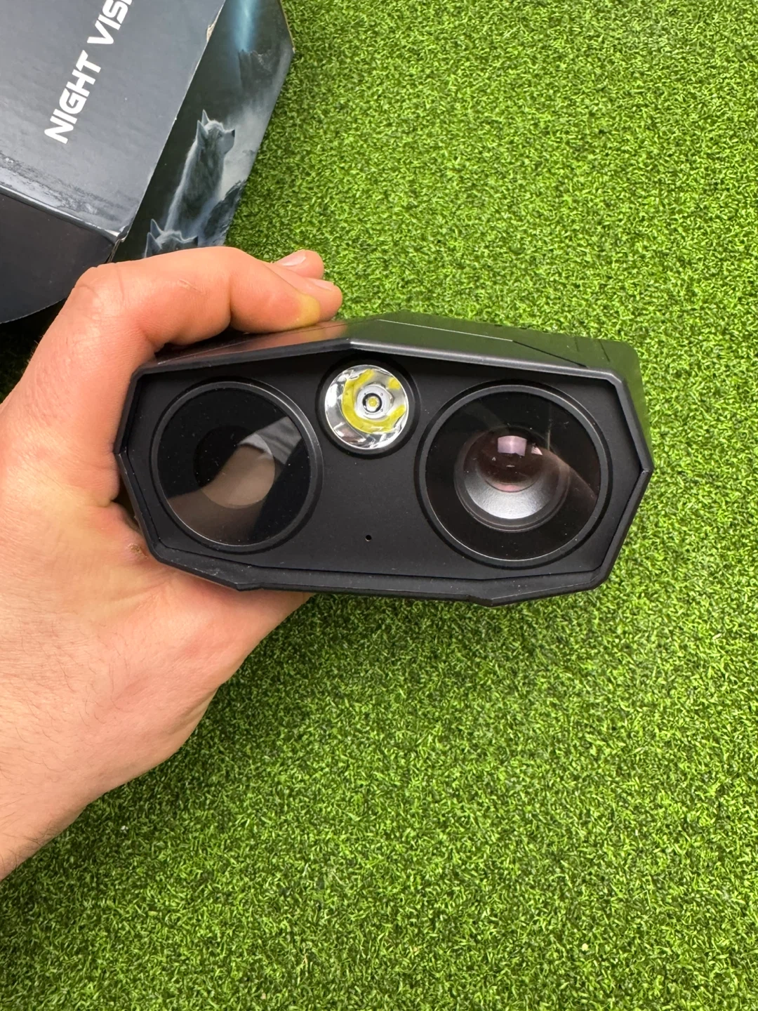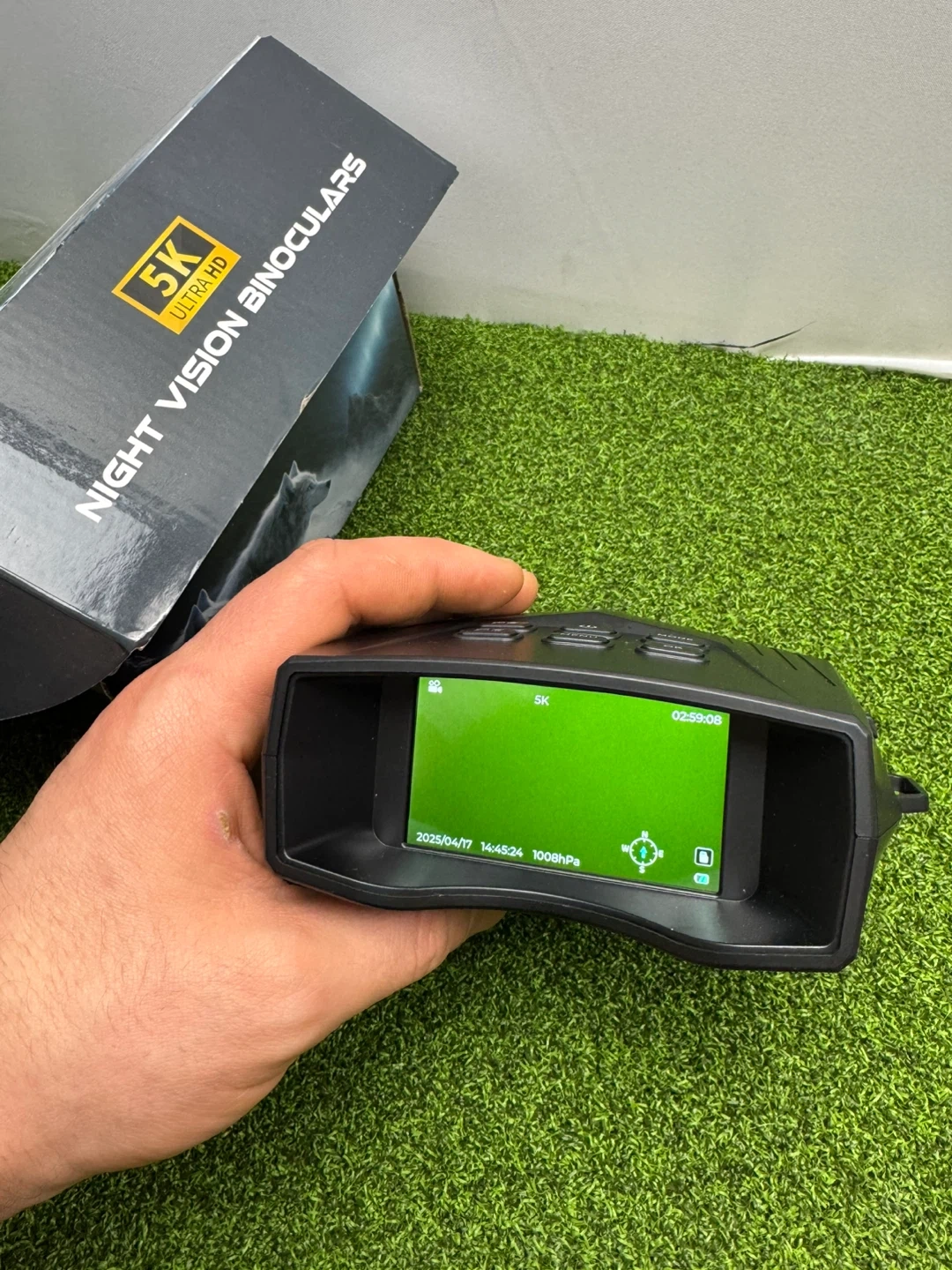 These 5K Ultra HD night vision binoculars are black and come with a focus wheel. They feature USB and TF card slots. Includes original box. These are great for nighttime observation!