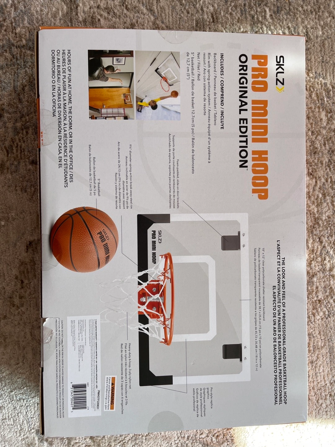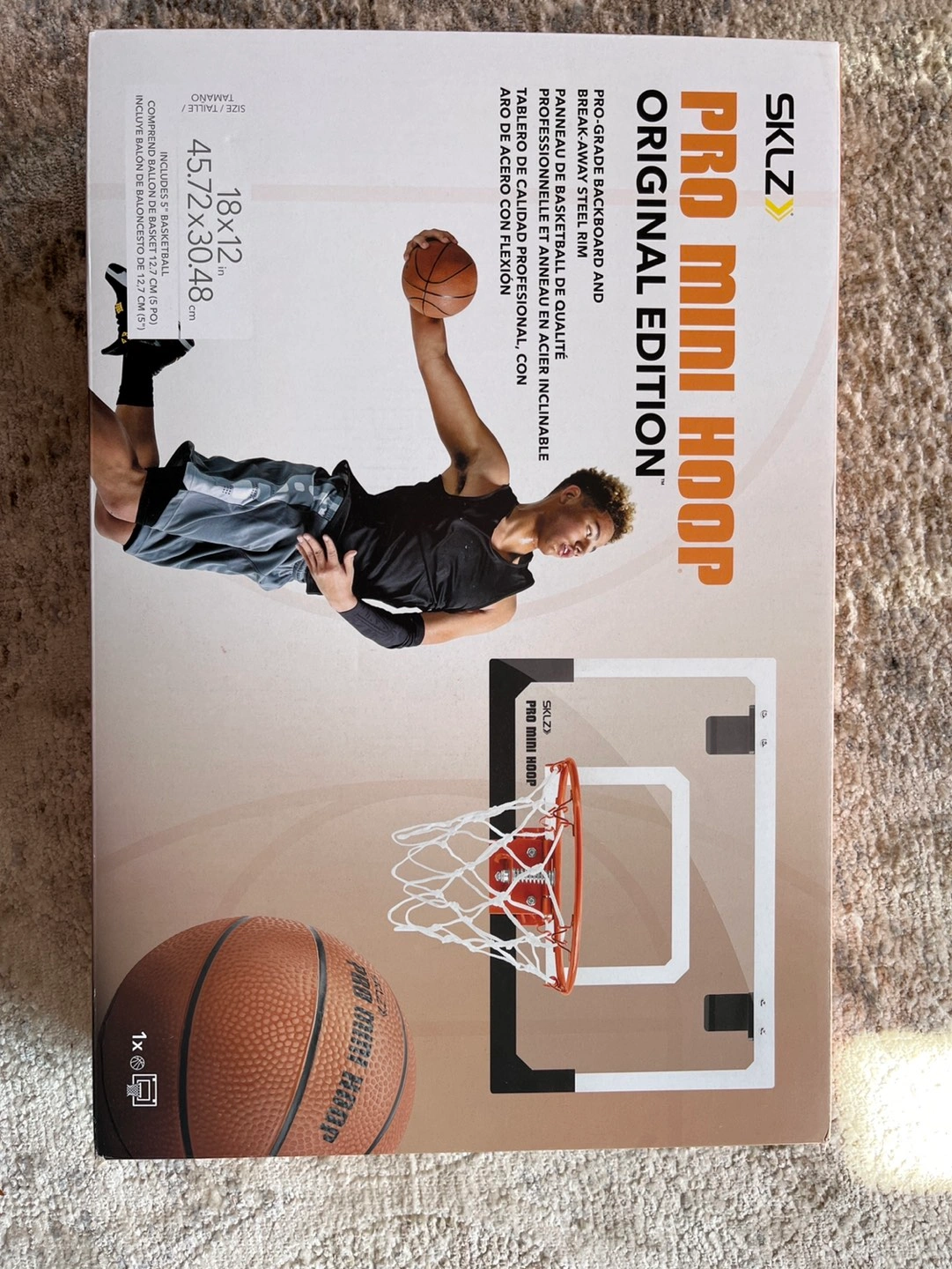 Sealed, unopened pro mini hoop with a 5” basketball included.