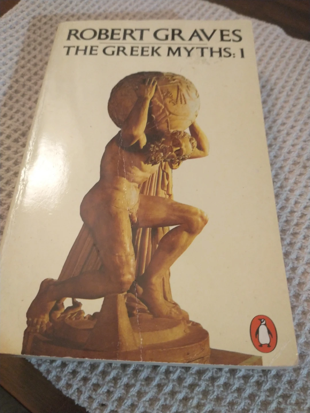 Robert Graves's "The Greek Myths: 1". This book covers myths and legends from ancient Greece. It's part of a larger collection. The Penguin Classics logo is visible.