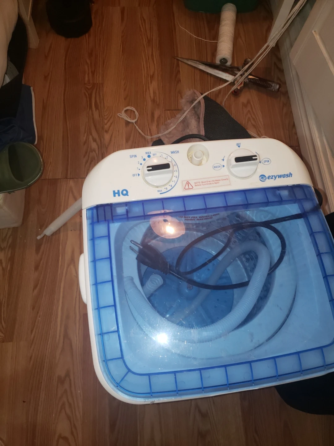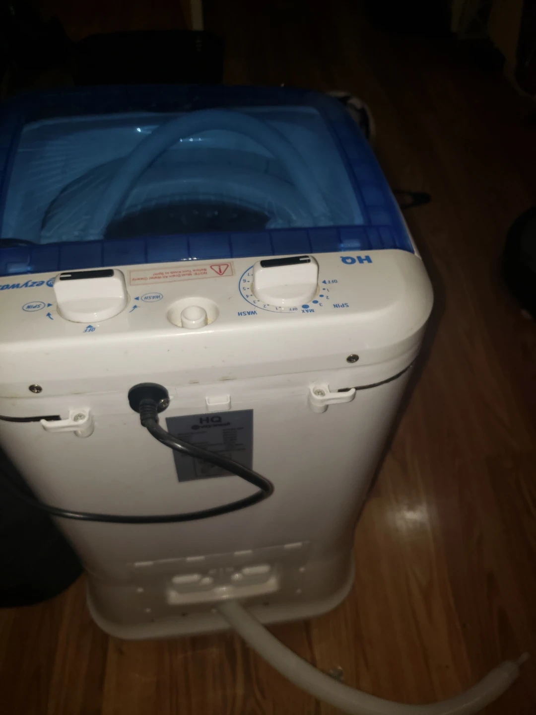 HQ ezywash portable washing machine, model XPB25-288. It has a max washing capacity of 5.51lb. Rated voltage is 110V-60Hz with a rated power of 170W. This compact washer is great for small loads and apartments!