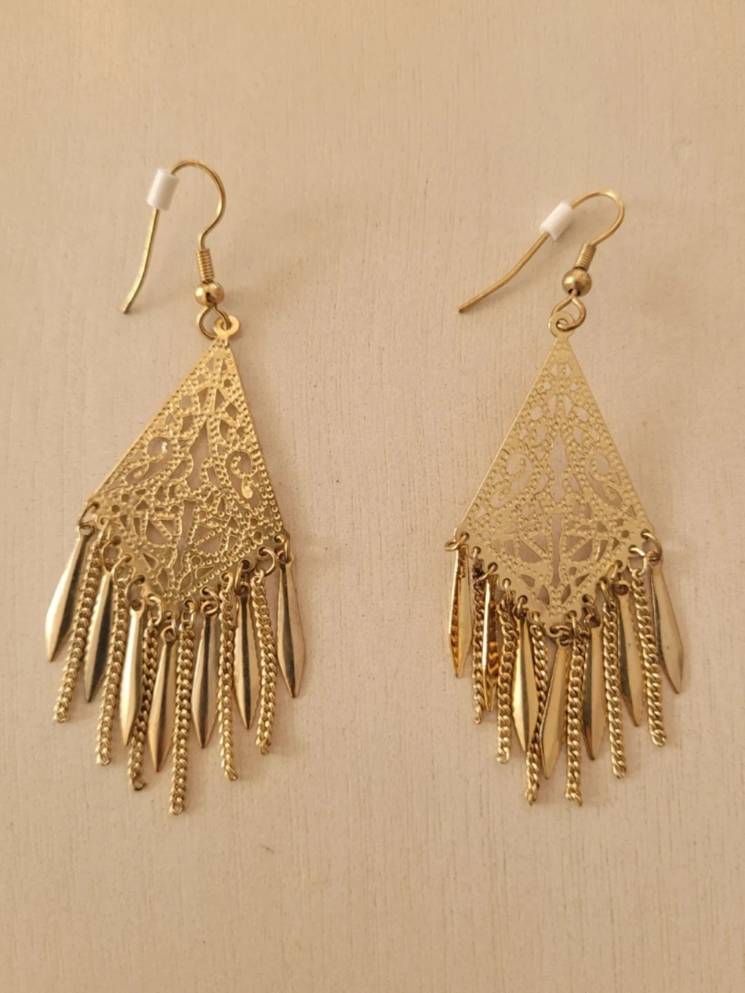 Buy & SellY2K Gold Tone Dangle EarringsY2K Gold Tone Dangle Earrings$15A pair of gold tone dangle earrings with a triangular top and cascading chains. Would look really cute with a Y2K-inspired outfit.ConditionLike newWHERE TO MEETVintage Cat Cafe TorontoView MapSELLERverifiedMichaelaCorso Italia-Davenport58546 reviews0 chats·0 favorites·5 viewsSEND CHAT TO SELLERHi Michaela! I’m interested in your listing.Hi Michaela! I’m interested in your listing.Get the Karrot app to chatSign In to chat