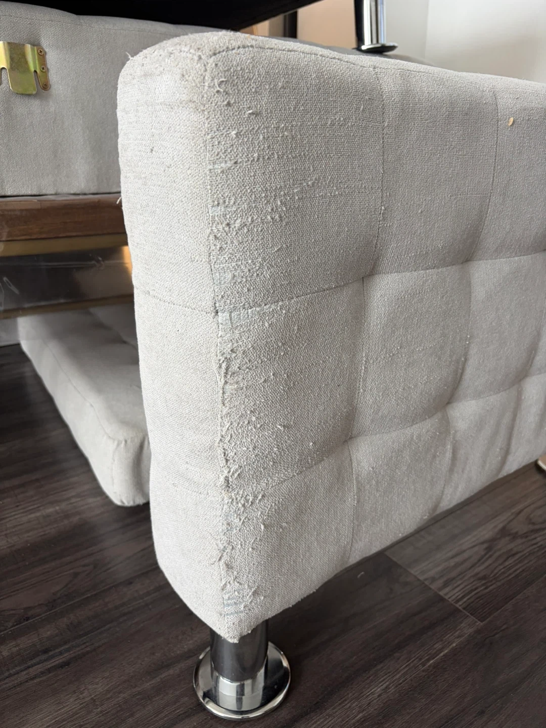 Arms are detachable as well as the chase. Fairly used, has cat scratches as indicated in the photos. Pick-up only.