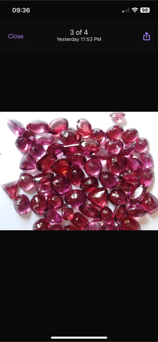 A collection of loose, faceted garnet gemstones. These stones are a rich red-pink hue. Perfect for jewelry making or collections. Stone material. Price is per gem.