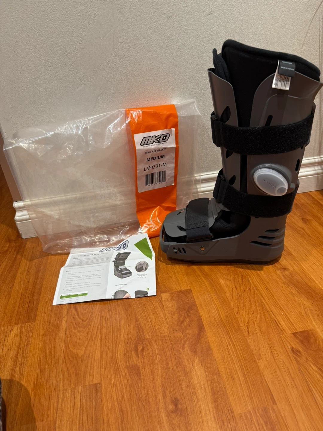 MKO Sprint Air Walker. Size medium. Features air bladders and adjustable straps. Includes instructions. Used twice. In great condition. Purchased for $200.