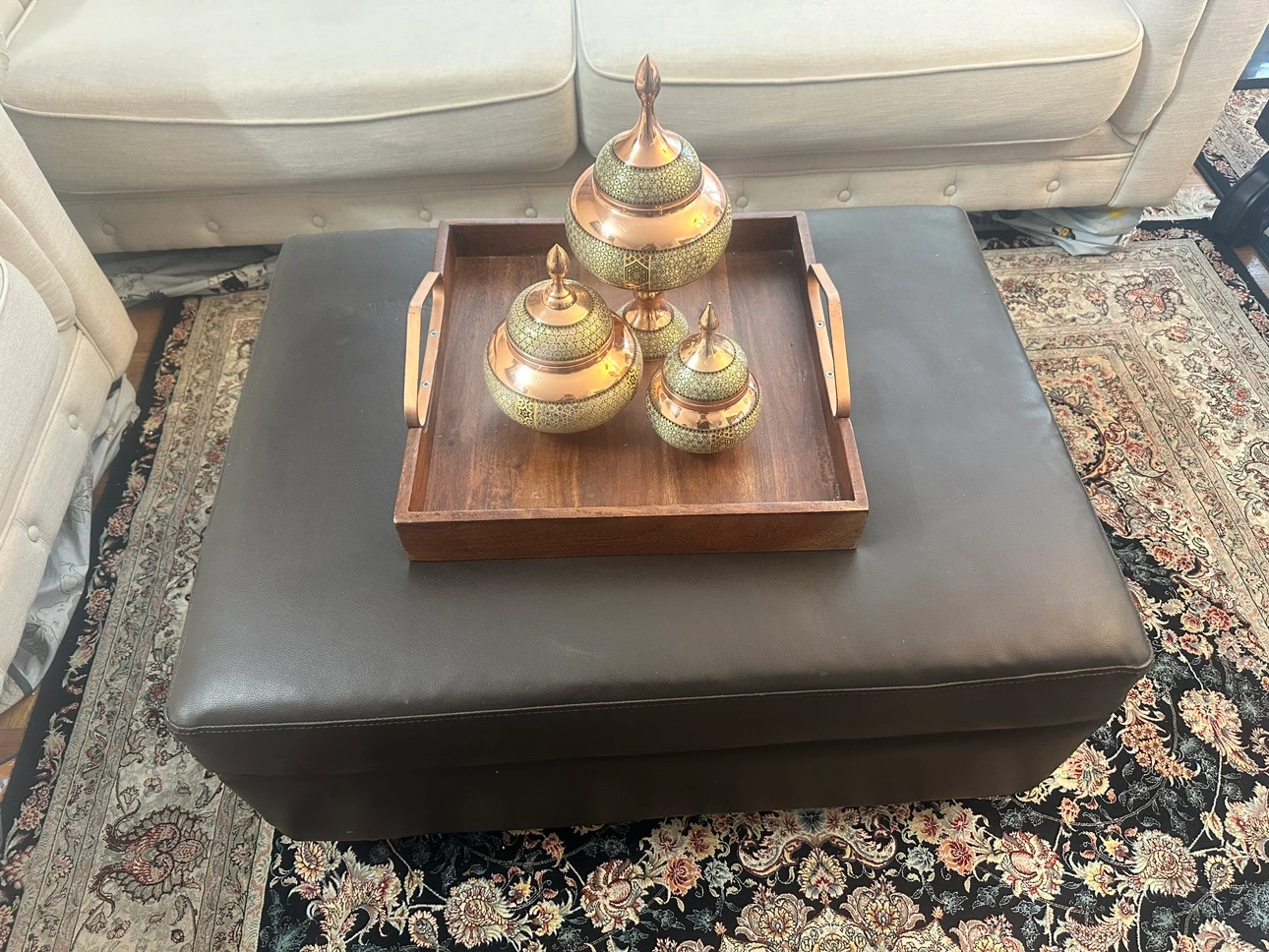 Brown Leather Ottoman