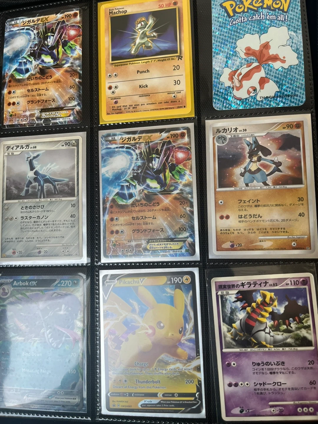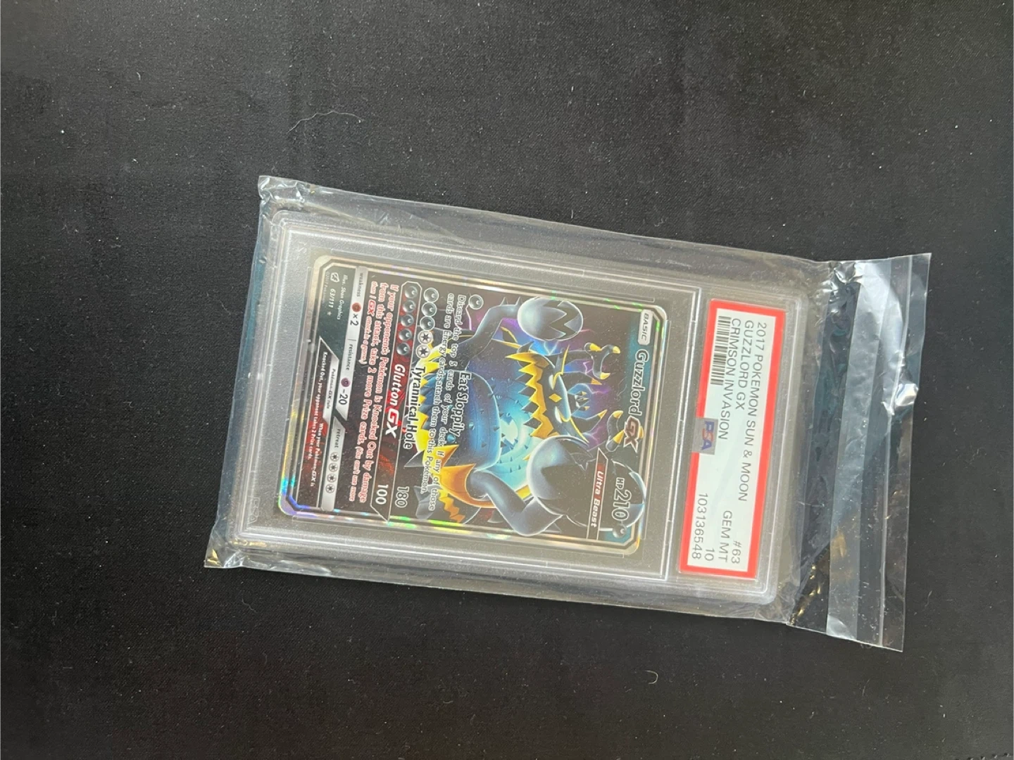 Collection of various Pokémon trading cards, including V, VMAX, GX, and basic energy cards. Also features a PSA 10 graded GuzzLord GX card. Great for collectors!
