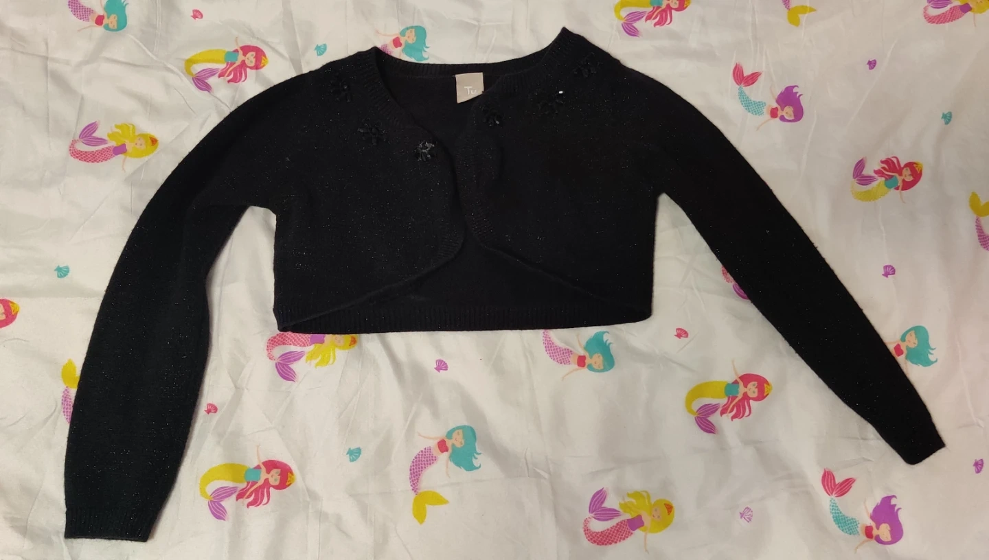 Selling a cute Indigo Kids jean dress paired with a black shrug! Both items are in great condition and perfect for a little one. The dress features a button-down front and a stylish design, while the shrug adds a touch of warmth and sparkle to any outfit