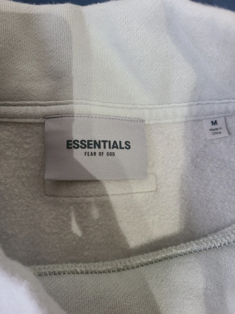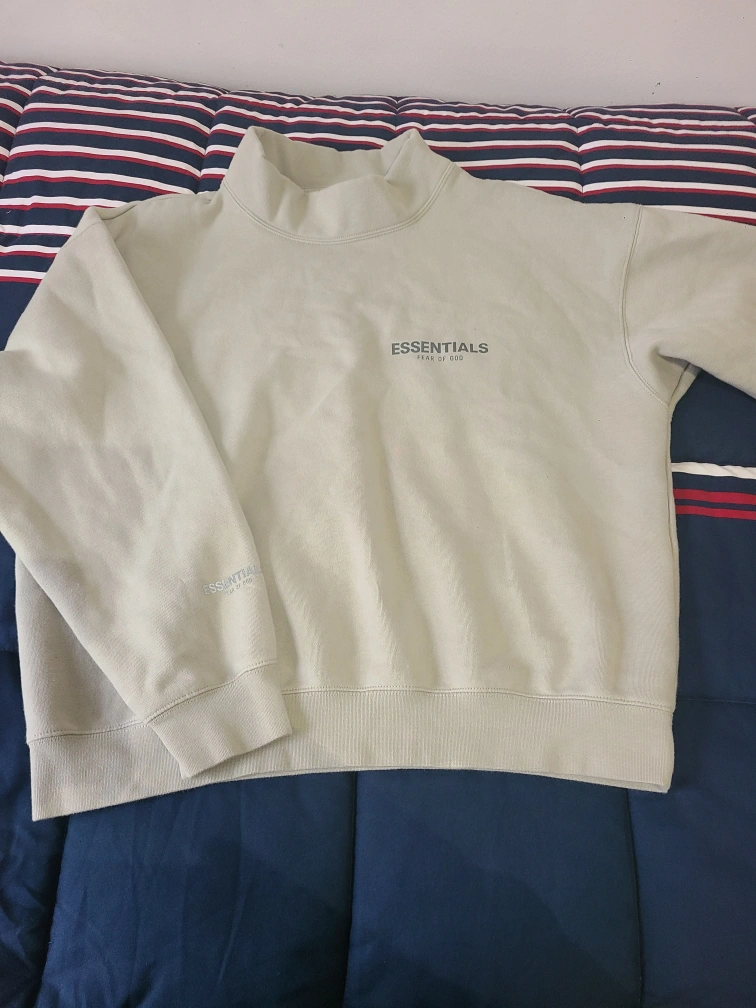 Men's size medium Essentials Fear of God mock neck sweatshirt. Light beige colour. Features branding on the chest and sleeves. Good condition.