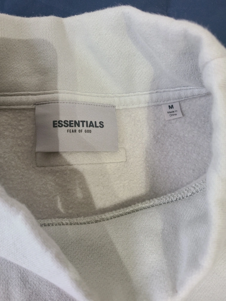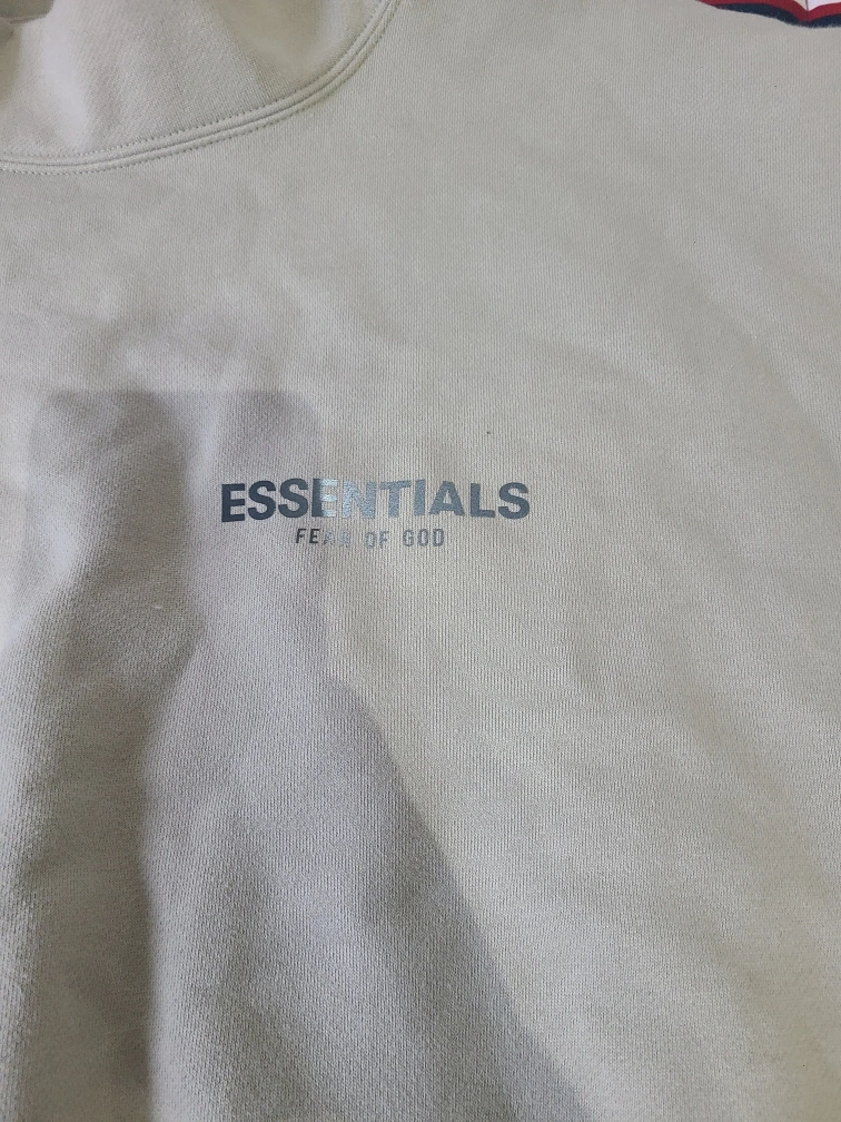 Men's size medium Essentials Fear of God mock neck sweatshirt. Light beige colour. Features branding on the chest and sleeves. Good condition.