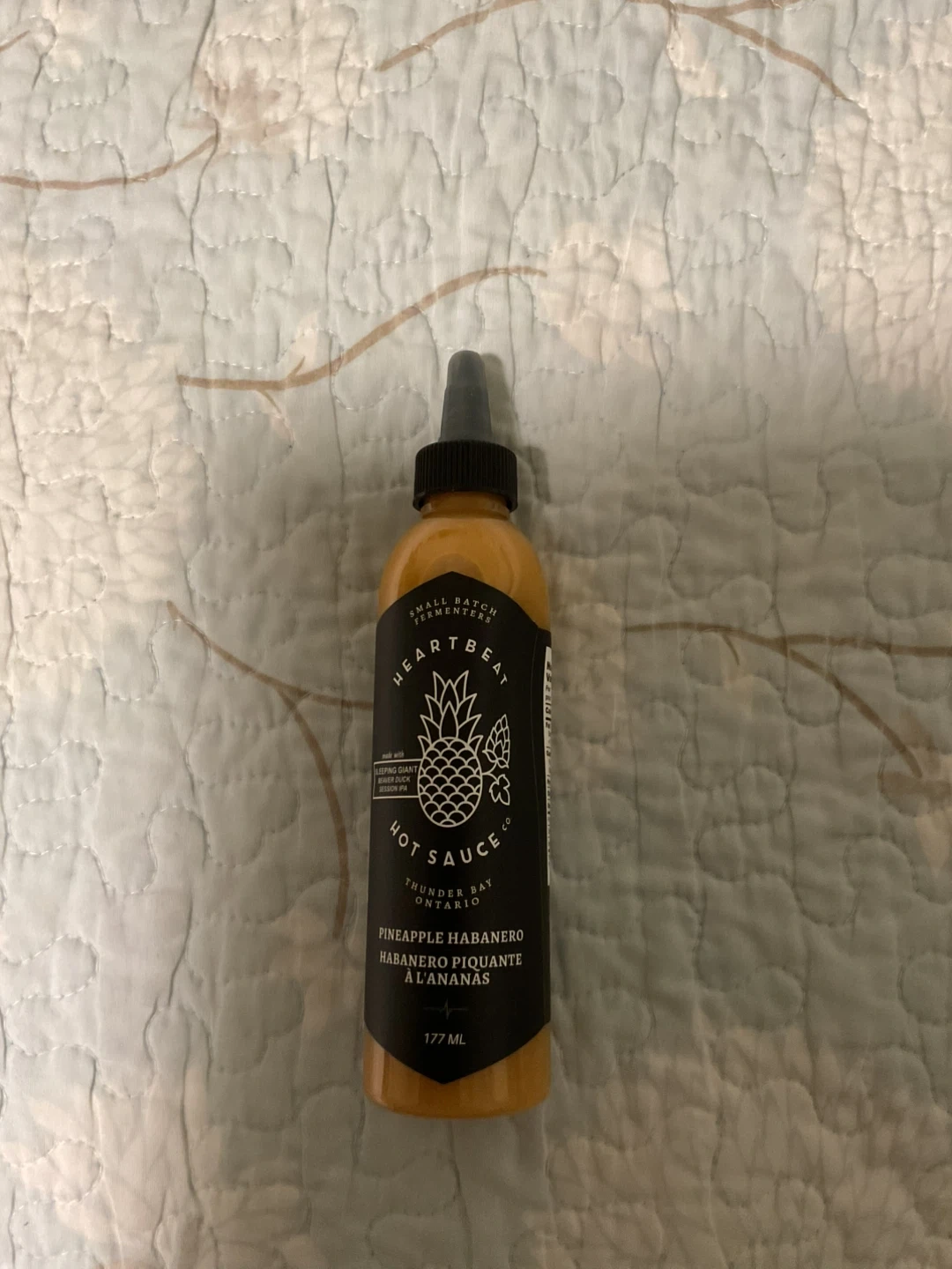 Heartbeat Hot Sauce Pineapple Habanero flavour. Comes in a 177ml bottle. Made with small batch fermentation. This hot sauce adds a touch of sweet heat to your meals.