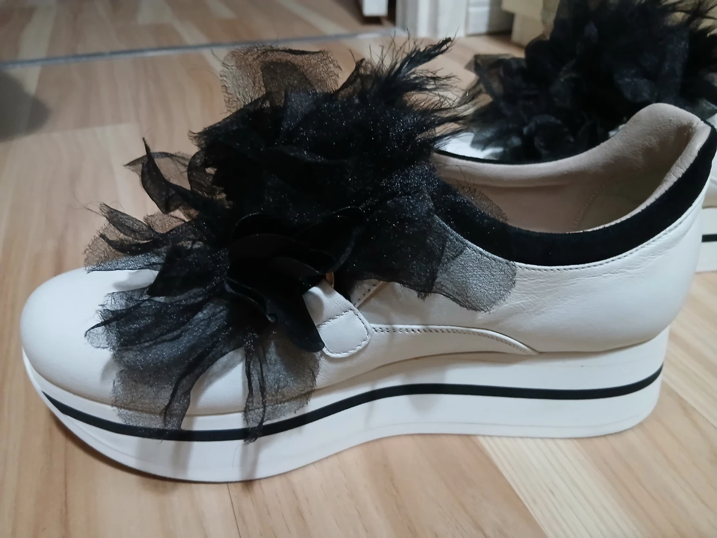 TOSCABLƯ Studio Platform Shoes with Black Ruffle Detail
