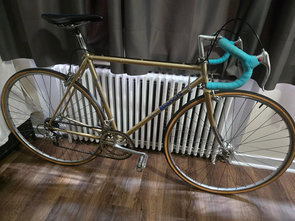 Selling a Bianchi road bike in gold. It's a classic and ready for a new home. Great for city commutes or weekend rides