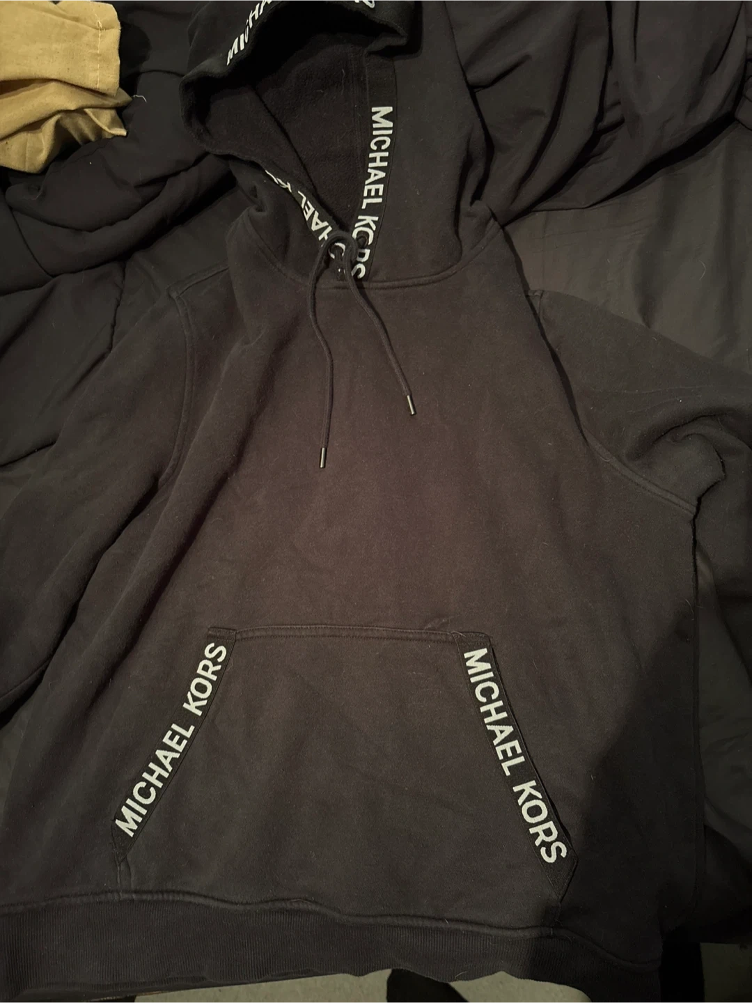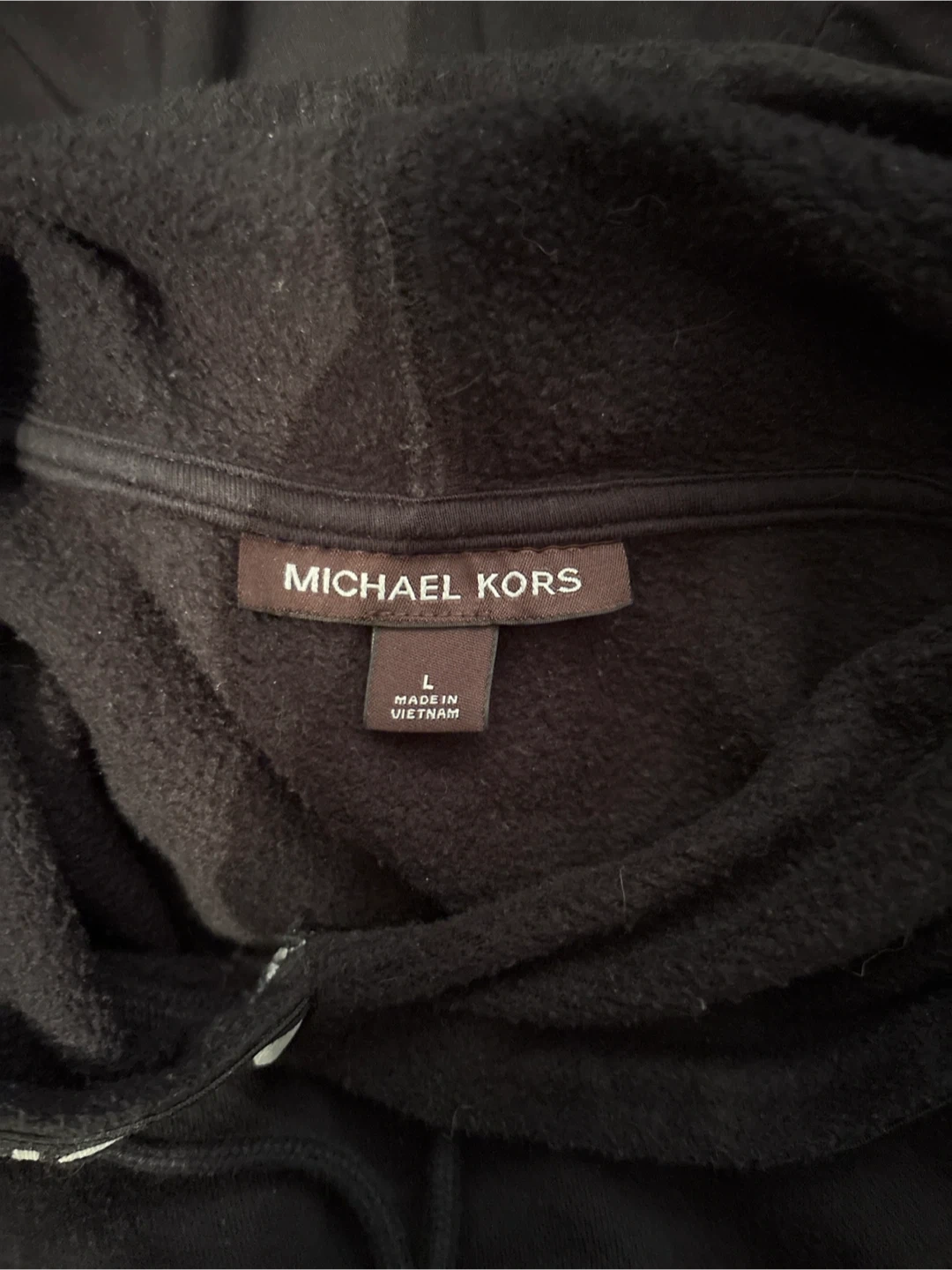 A black Michael Kors hoodie. It's a size large and made in Vietnam. Features "Michael Kors" branding on the hood lining and pocket trim. Worn a few times, kept in good condition hasnt been worn in a while. Bought for around $100.