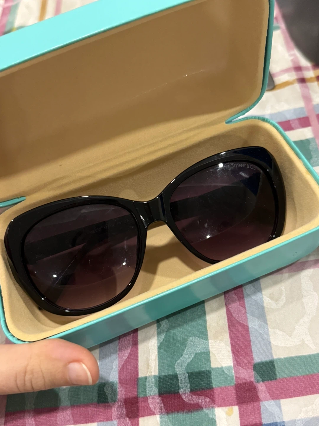 Buy & SellTiffany & Co. Sunglasses with CaseTiffany & Co. Sunglasses with Case$400Black sunglasses from Tiffany & Co. Comes with the iconic Tiffany blue hard case. These are perfect for protecting your eyes in style!BrandTiffany & Co.WHERE TO MEETCheck LocationView MapSELLERverifiedSaraOakridge741 review0 chats·0 favorites·4 viewsSEND CHAT TO SELLERHi Sara! I’m interested in your listing.Hi Sara! I’m interested in your listing.Get the Karrot app to chatSign In to chat