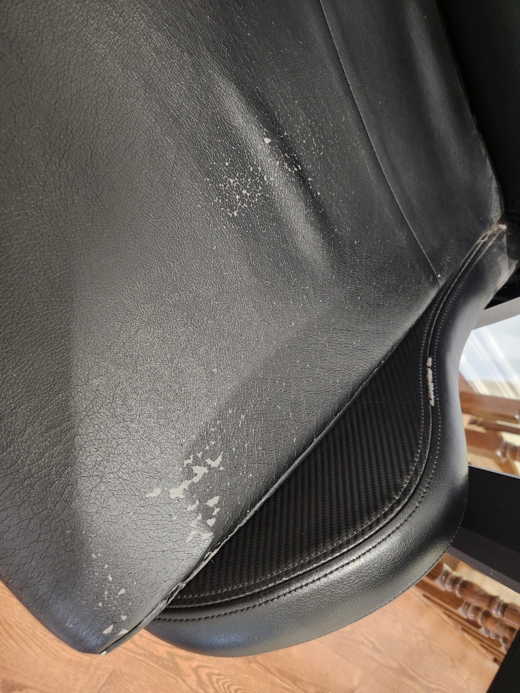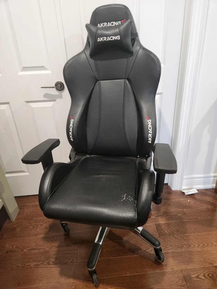 Selling a used AKRacing gaming chair. It has some wear on the seat, as shown in the photos. Can be patched with adhesive leather repair patch. Features upgraded soft wheels, to protect floors! They are also very quiet.