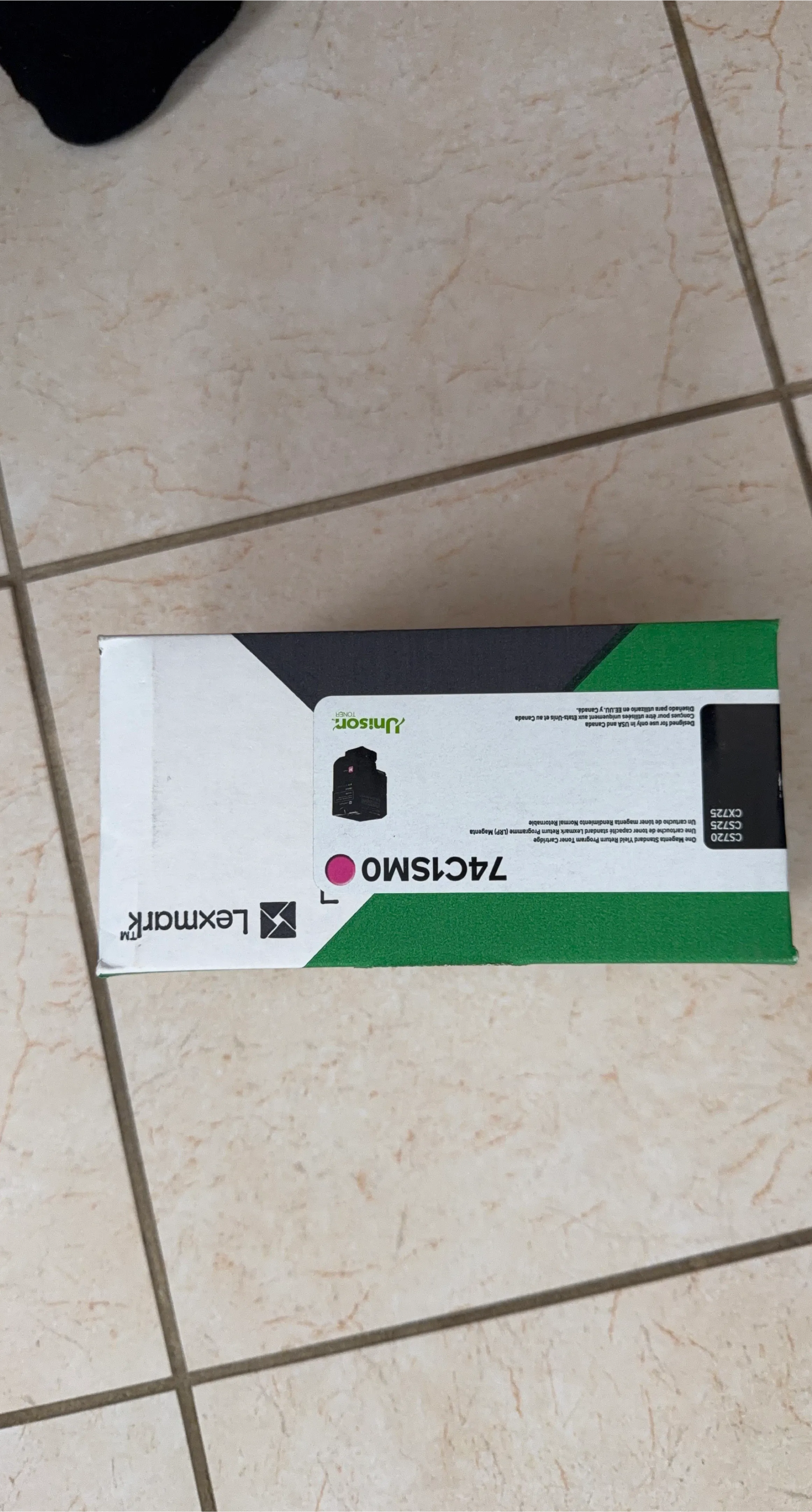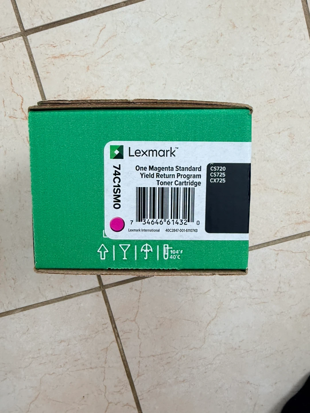 This is a new Lexmark 74C1SM0 standard yield magenta toner cartridge. It's for use with CS720, CS725, and CX725 printers. Toner cartridge, magenta standard yield.