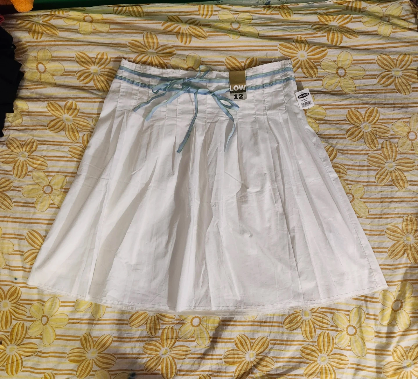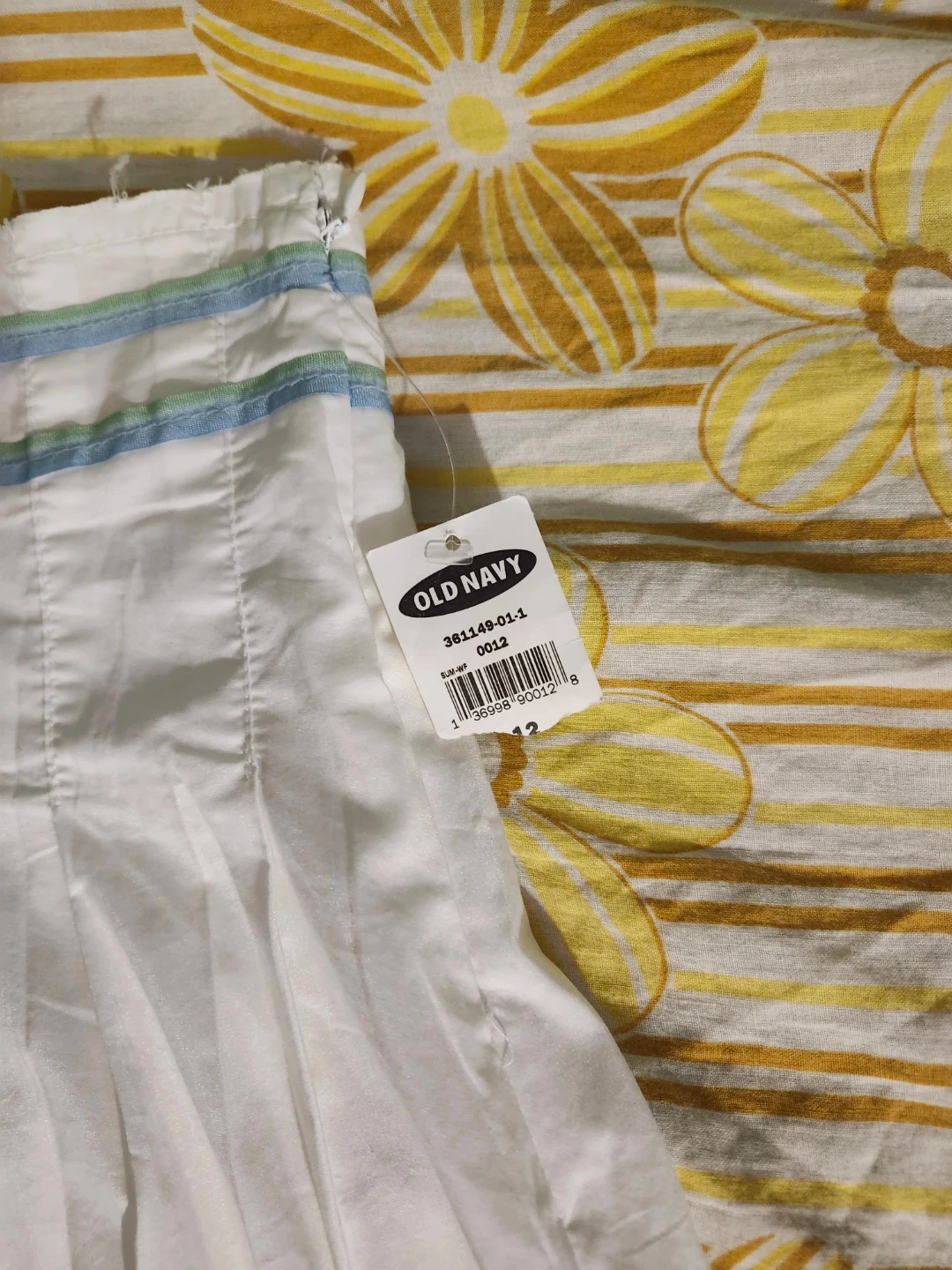 NWT Old Navy White pleated skirt with blue ribbon detail