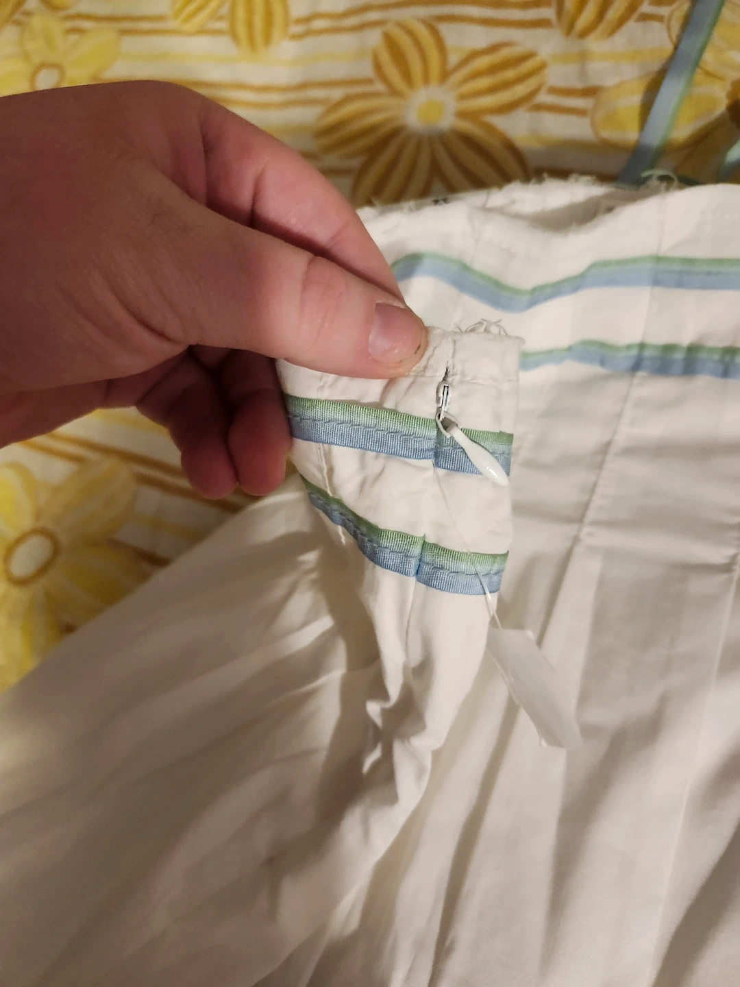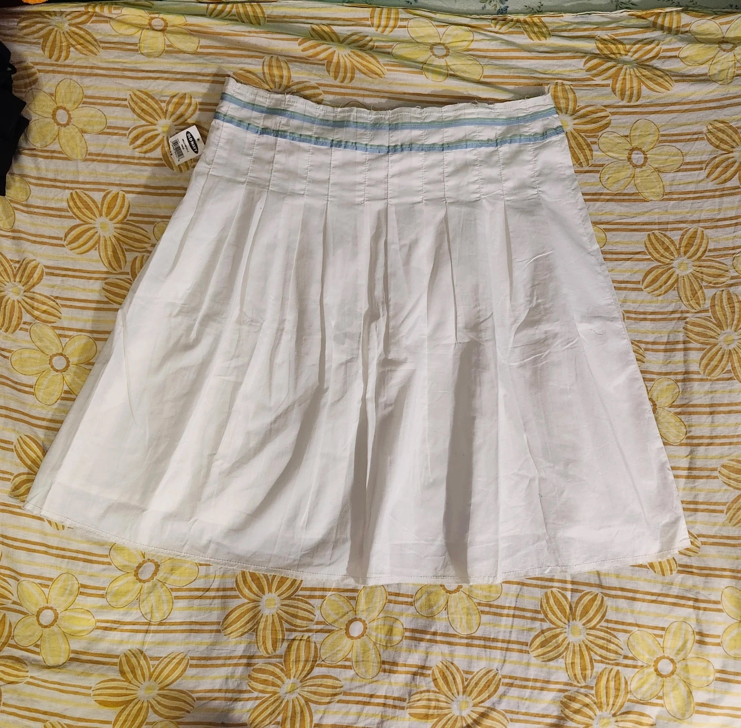 NWT Old Navy White pleated skirt with blue ribbon detail