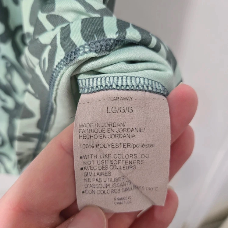 Loose fit t-shirt. Longer length. Short sleeve. Floral/animal print. Light green colour.