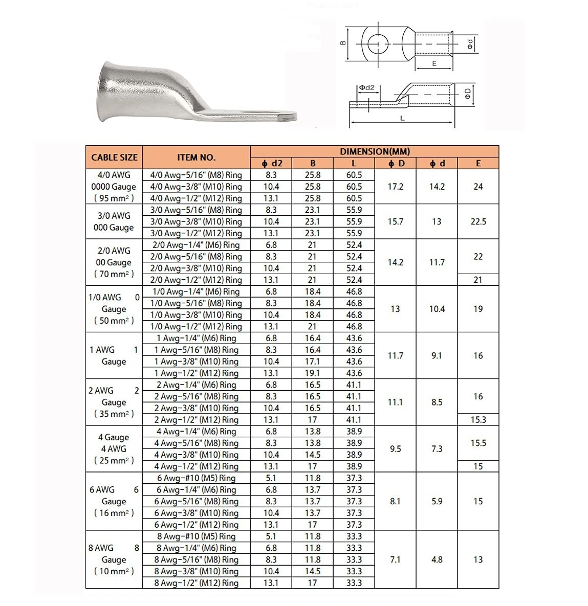 0/1/2 AWG Heavy Duty 2x1/4 Copper Lugs - 11 Pcs