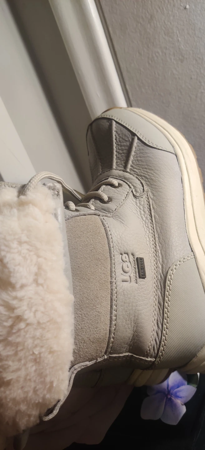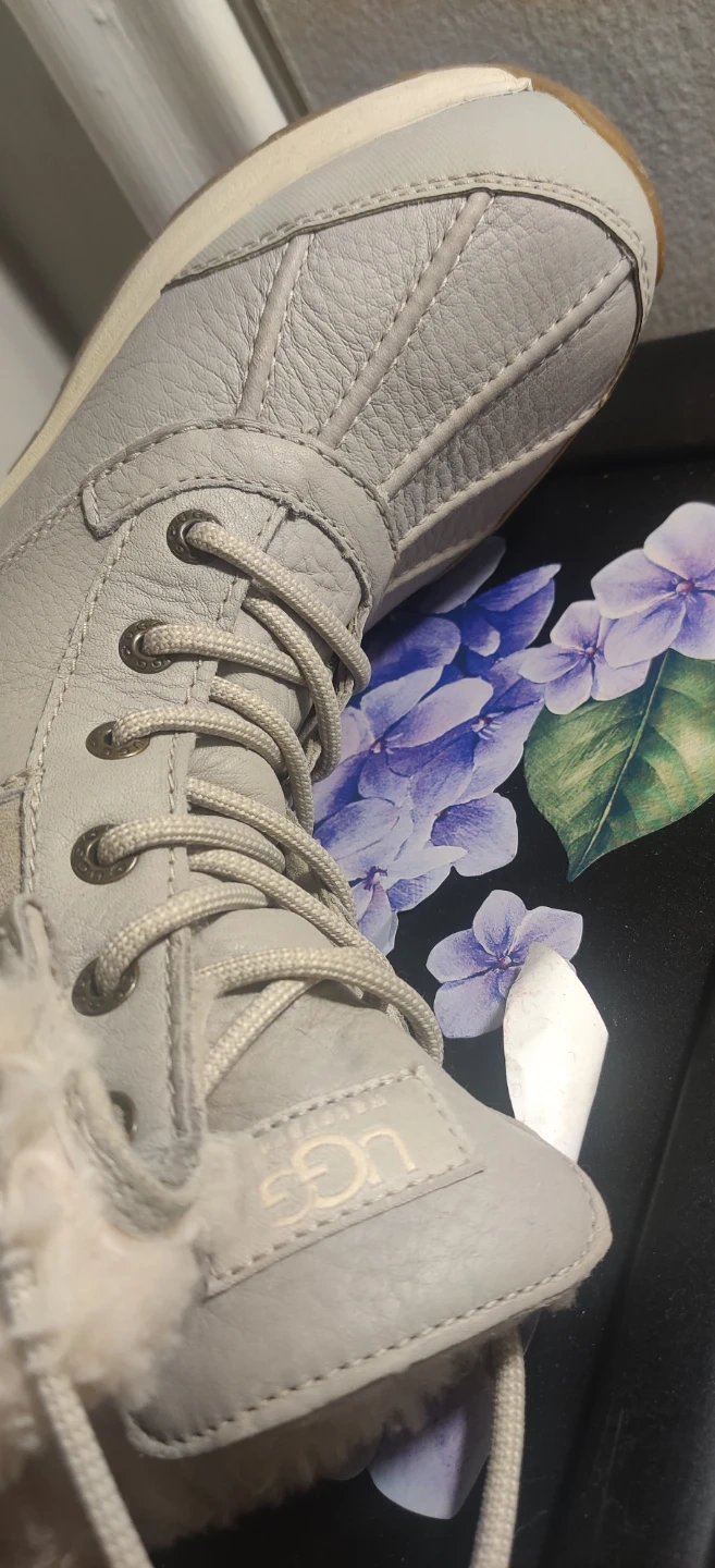 These UGG boots are designed for cold weather, featuring a waterproof exterior and warm lining. They're a size 7.5 with laces for a secure fit. Perfect for staying cozy and dry during winter!Boots are pre-owned so minor sign of wear should be expected
