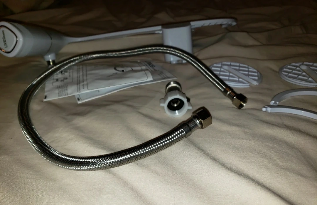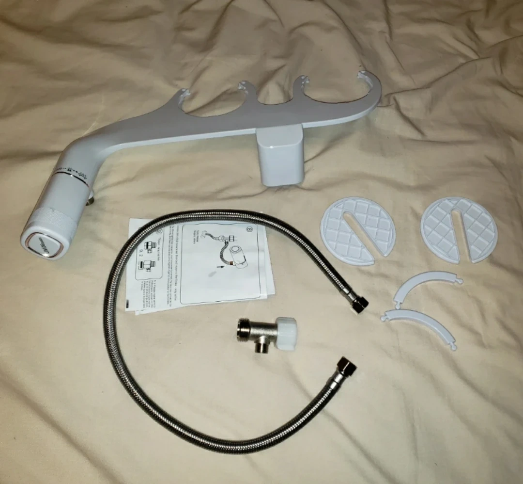 A bidet attachment for your toilet seat. never used as I bought it without realizing it doesn't fit our toilet seat. It includes the bidet, a flexible hose, and installation hardware. Instructions are also provided.