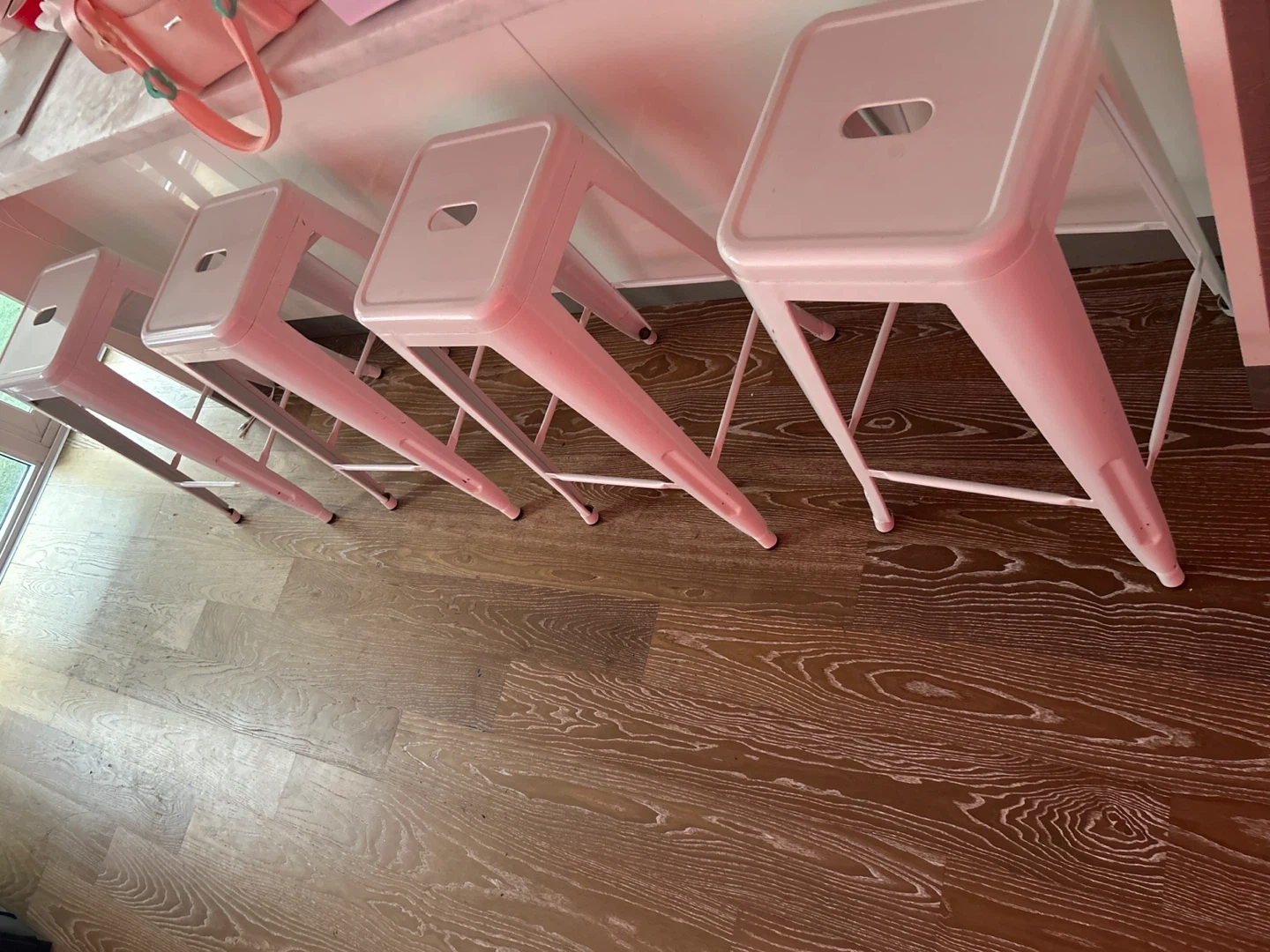 Selling a set of four white metal bar stools. These stools are made of durable metal and have a sleek, modern design. They're perfect for a kitchen island or home bar area. The simple design makes them easy to clean and maintain.
