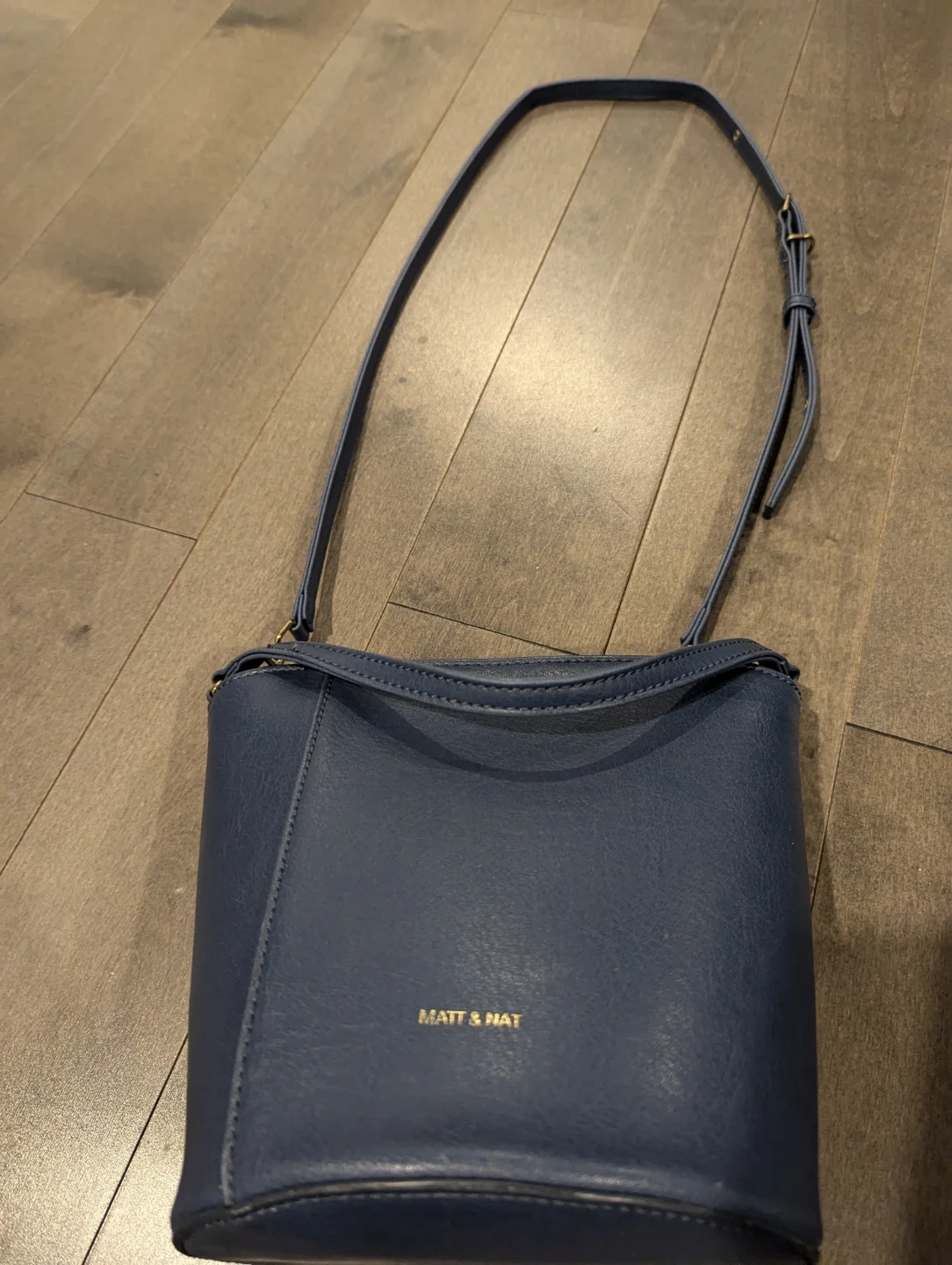 Great used condition - A stylish blue bucket bag from Matt & Nat. Made from vegan leather. It's a great size for everyday essentials!