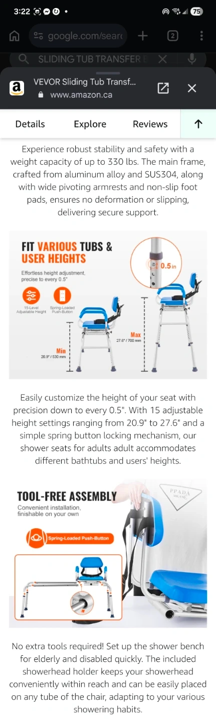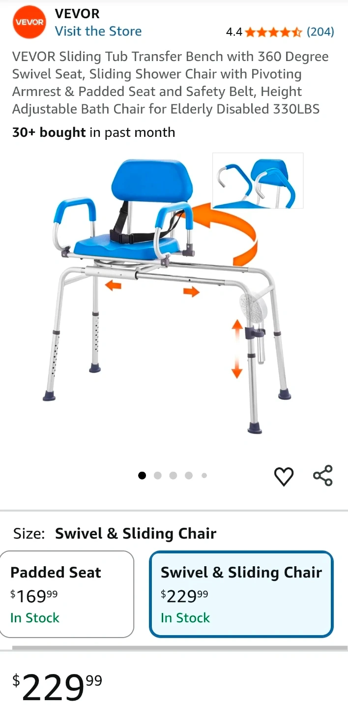 I'm selling a VEVOR sliding tub transfer bench, perfect for anyone needing assistance getting in and out of the bathtub. This new bench features a 360-degree swivel seat, sliding shower chair, pivoting armrest, and padded seat with safety belt and adjustable height, supporting up to 330lbs.