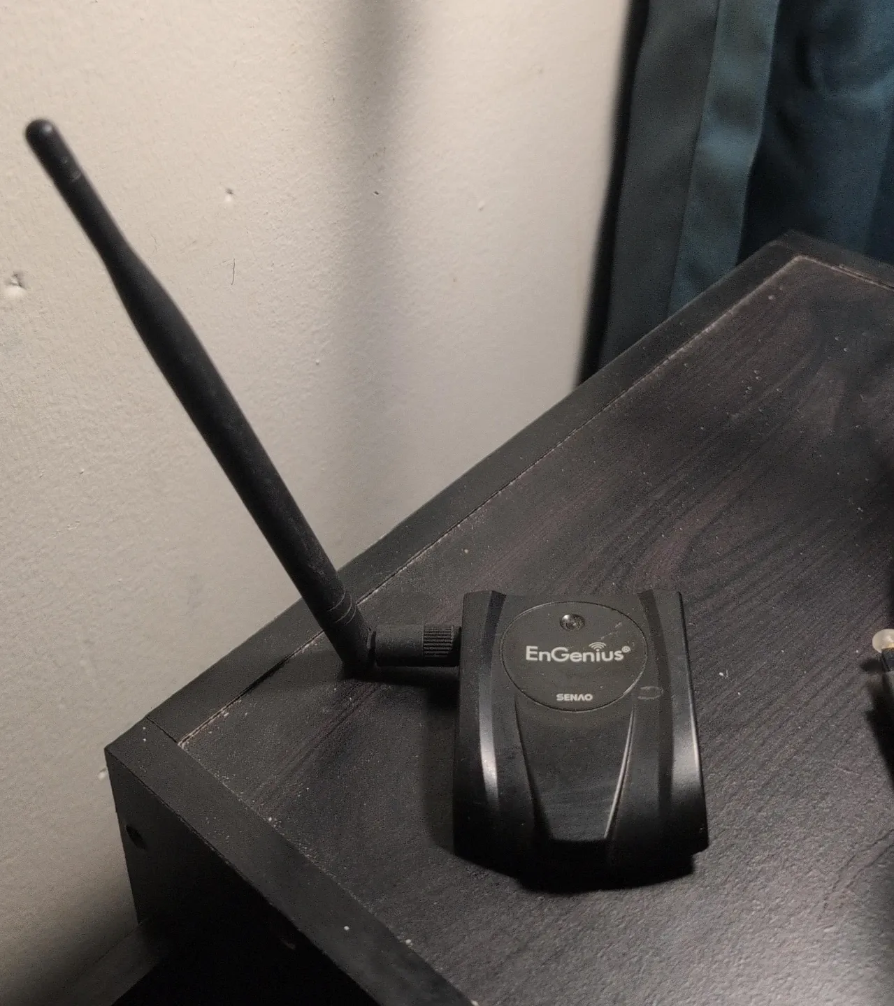 This is an EnGenius SENAO wireless adapter. It's black and includes an antenna. It's useful for extending wireless network range.