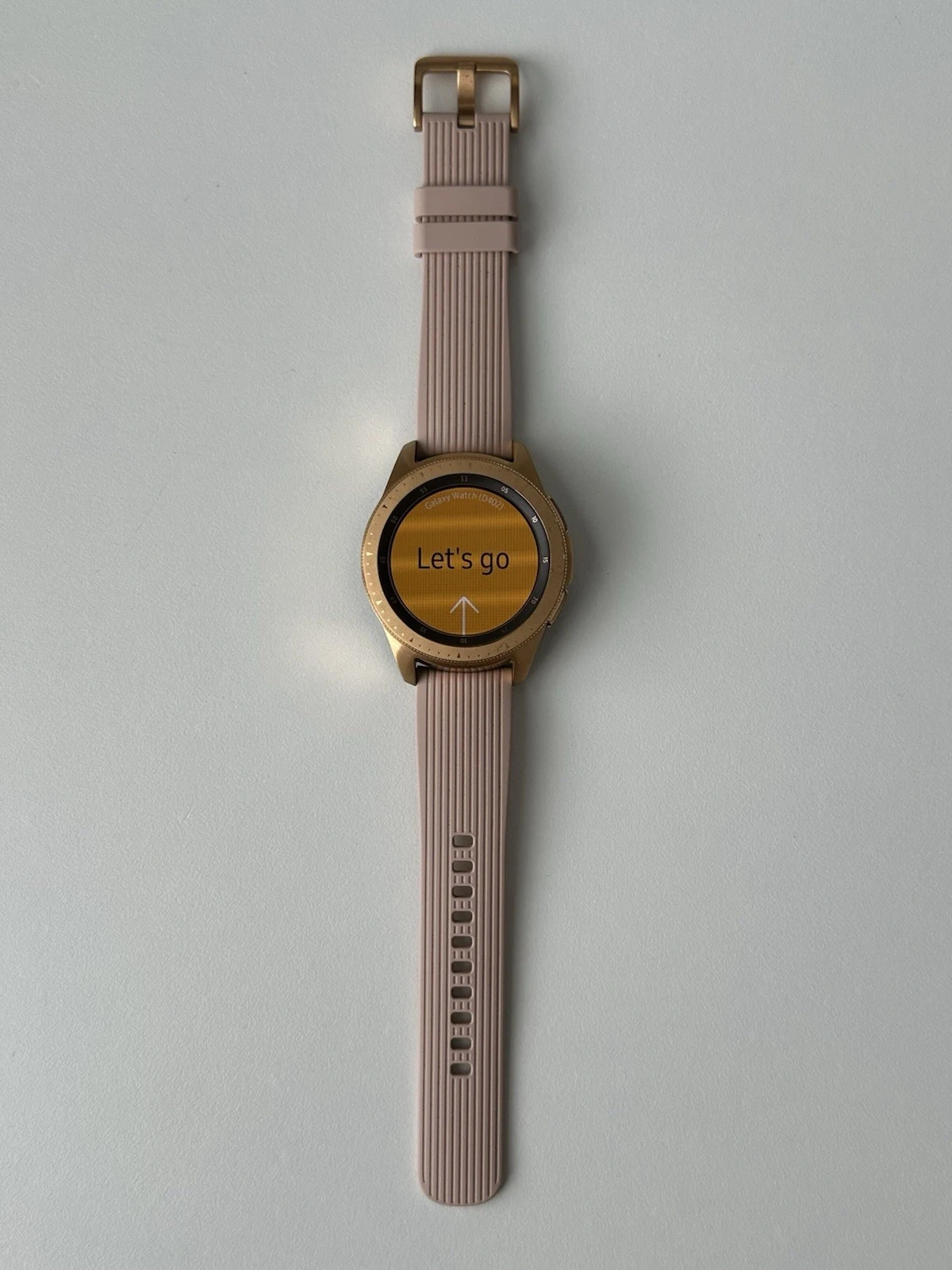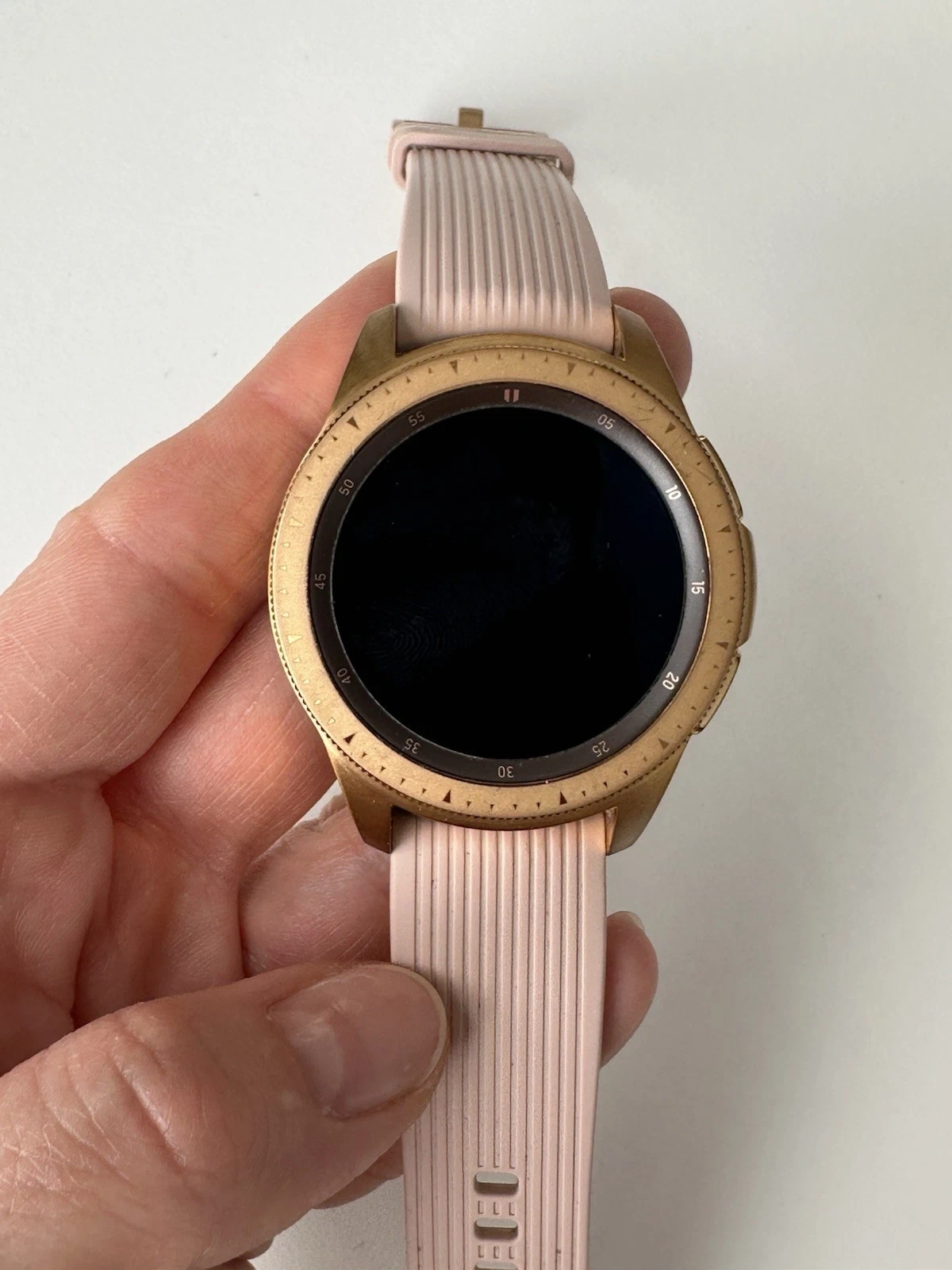 Buy & SellSamsung Galaxy Watch 42mm SM-R815U LTE Gold SmartwatchSamsung Galaxy Watch 42mm SM-R815U LTE Gold Smartwatch$49.99Samsung Galaxy Watch 42mm. Gold stainless steel case with a pink silicone band. Compatible with Android. It has been reset and is working.WHERE TO MEET847 Deerfield Pkwy, StorageMartView MapSELLERverifiedNadiaBuffalo Grove700 reviews0 chats·1 favorites·5 viewsSEND CHAT TO SELLERHi Nadia! I’m interested in your listing.Hi Nadia! I’m interested in your listing.Get the Karrot app to chatSign In to chat