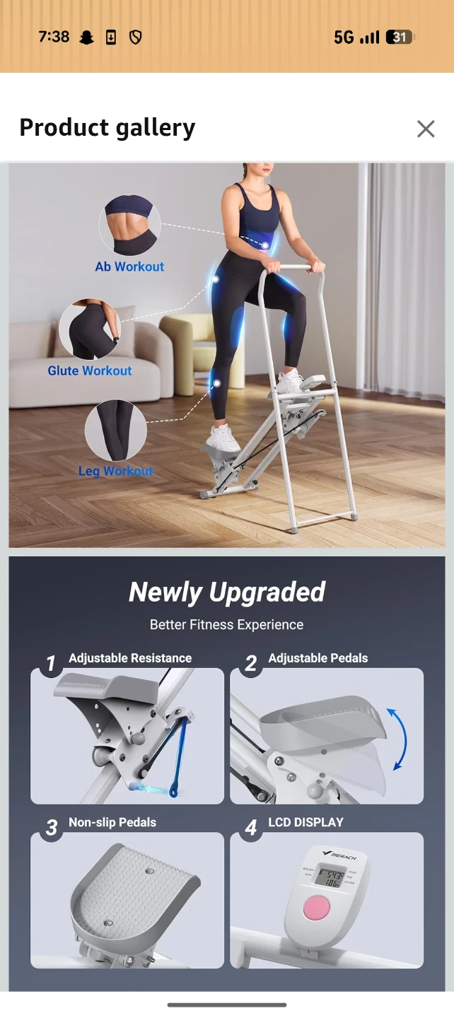 This vertical climber provides an effective full-body workout. It features adjustable resistance and non-slip pedals for comfort and safety. The LCD display tracks your workout progress. It has a weight capacity of 300 lbs.