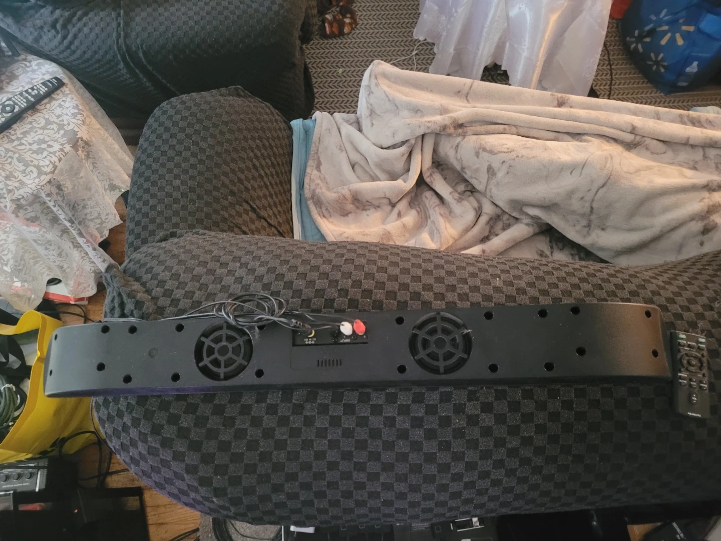 Ps3 Rare subwoofer with optical cable and aftermarket remote control. Don't use it clearing out closet